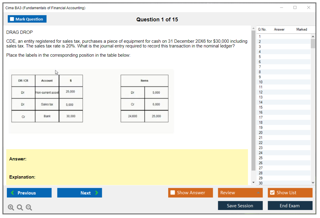 The CIMA BA3 Exam consists of 60 objective test questions.