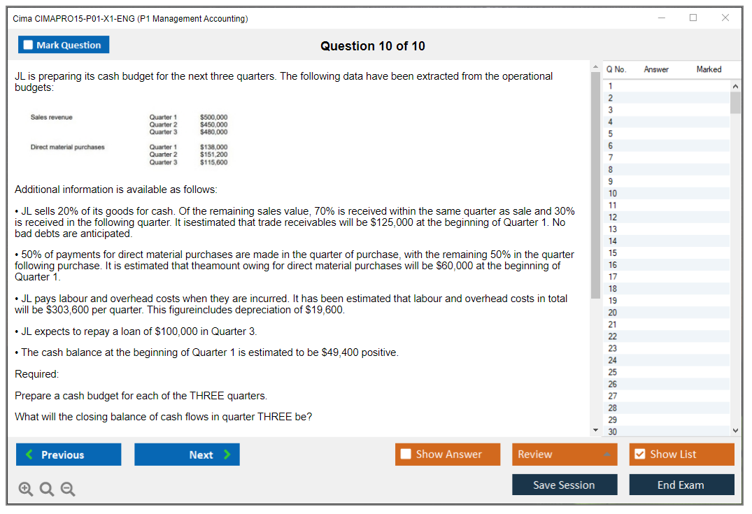 The CIMA CIMAPRO15-P01-X1-ENG (P1 Management Accounting) exam is part of the Chartered Institute of Management Accountants (CIMA) certification pathway. It focuses on management accounting principles and practices, including cost management, budgeting, and forecasting.