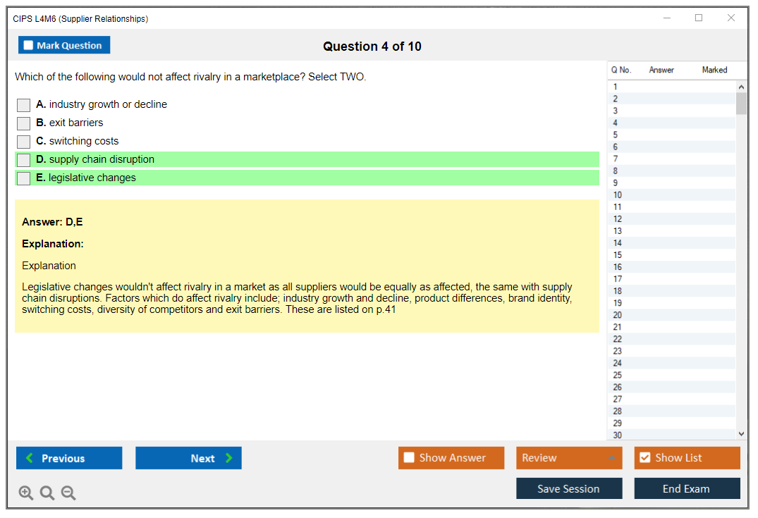 The CIPS L4M6 (Supplier Relationships) exam is part of the Chartered Institute of Procurement & Supply (CIPS) Level 4 Diploma in Procurement and Supply. This module focuses on developing effective relationships with suppliers, understanding the dynamics of supplier relationships, and the impact of these relationships on procurement and supply chain strategies.