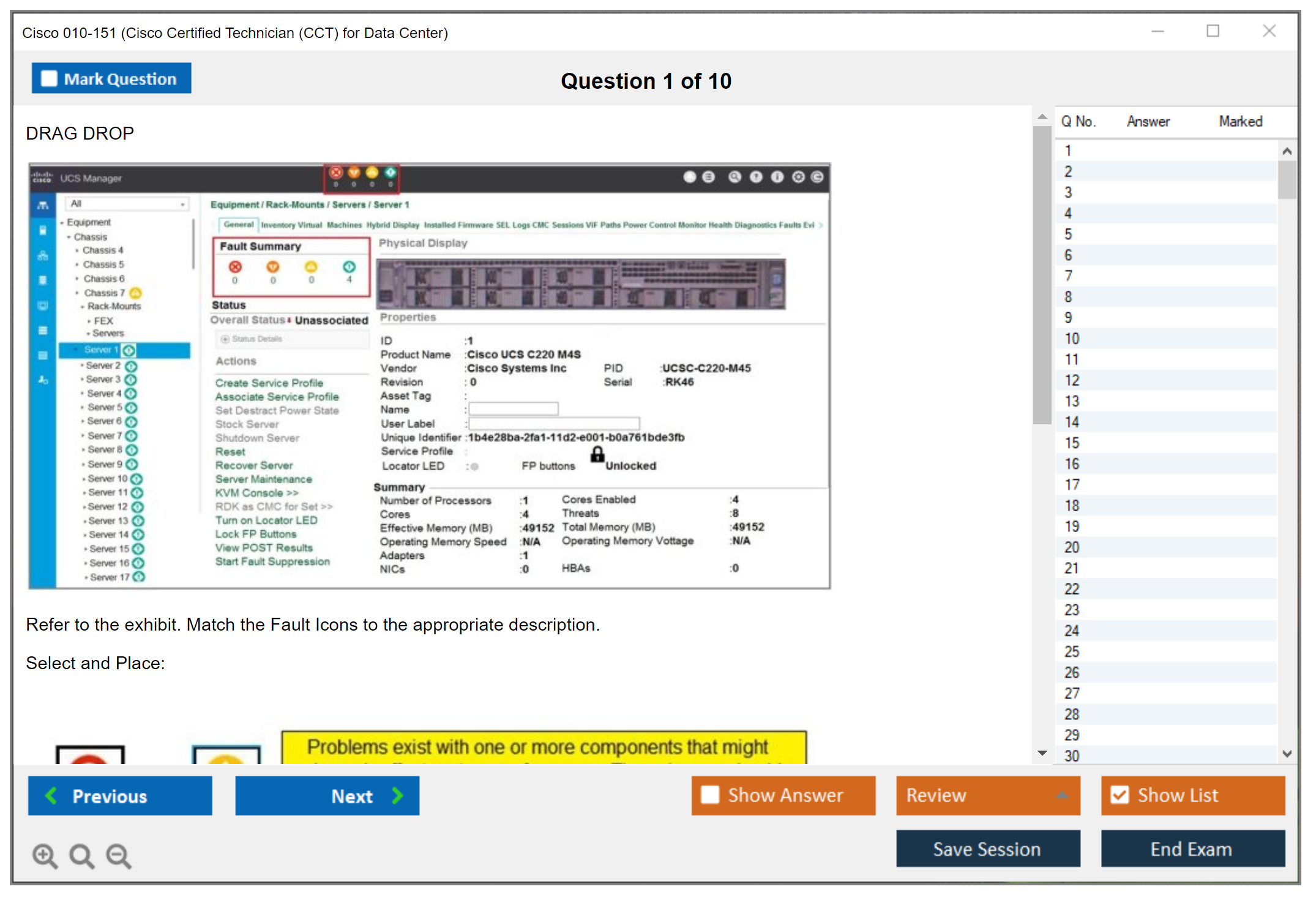 The question format of the Cisco 010-151 exam includes multiple-choice, drag-and-drop, and simulation questions.