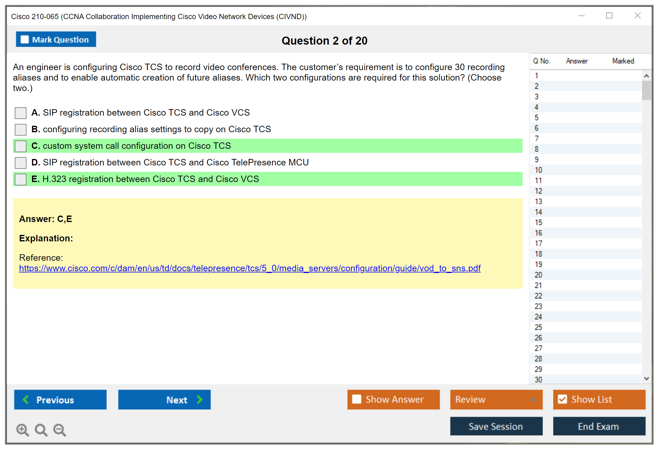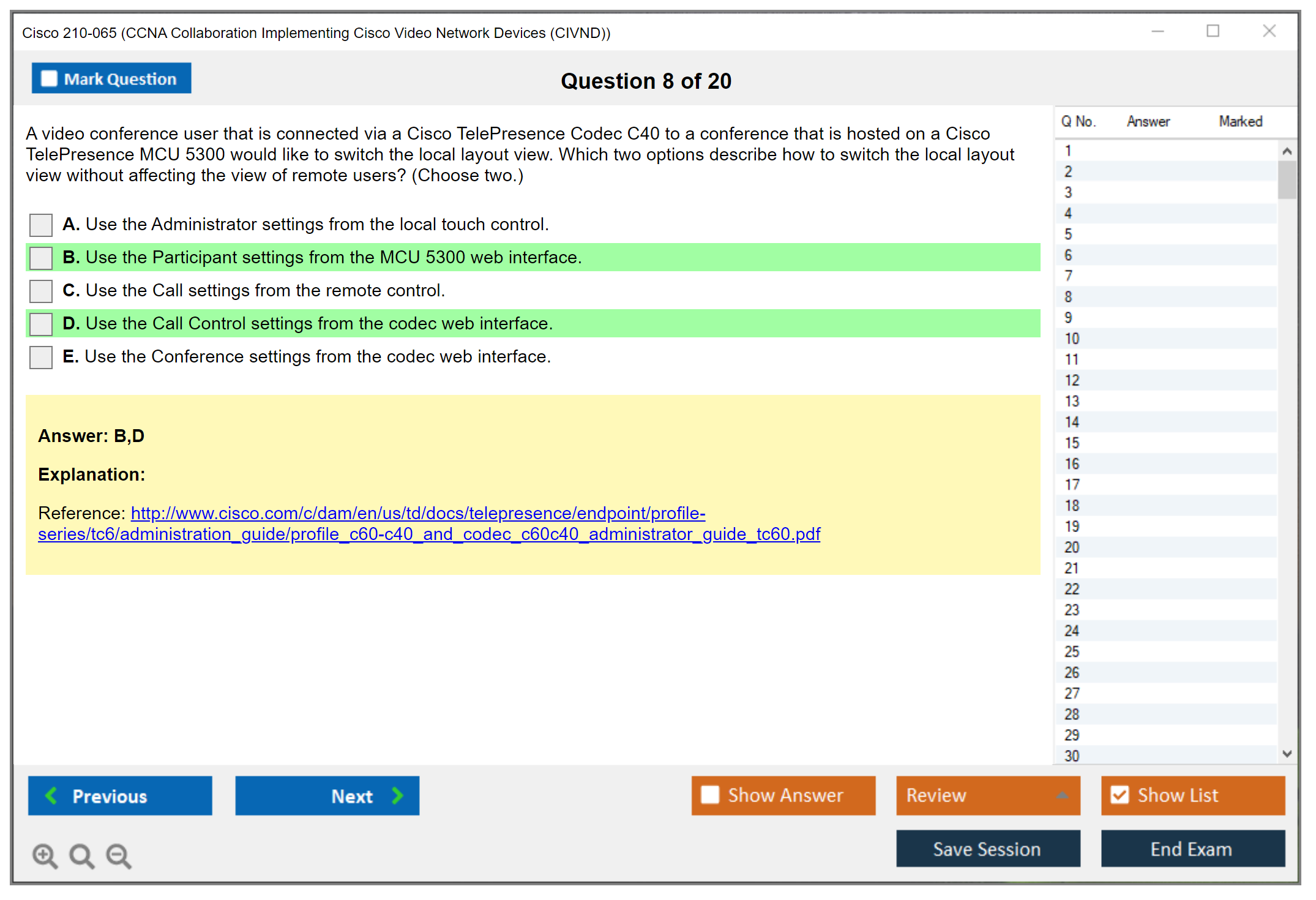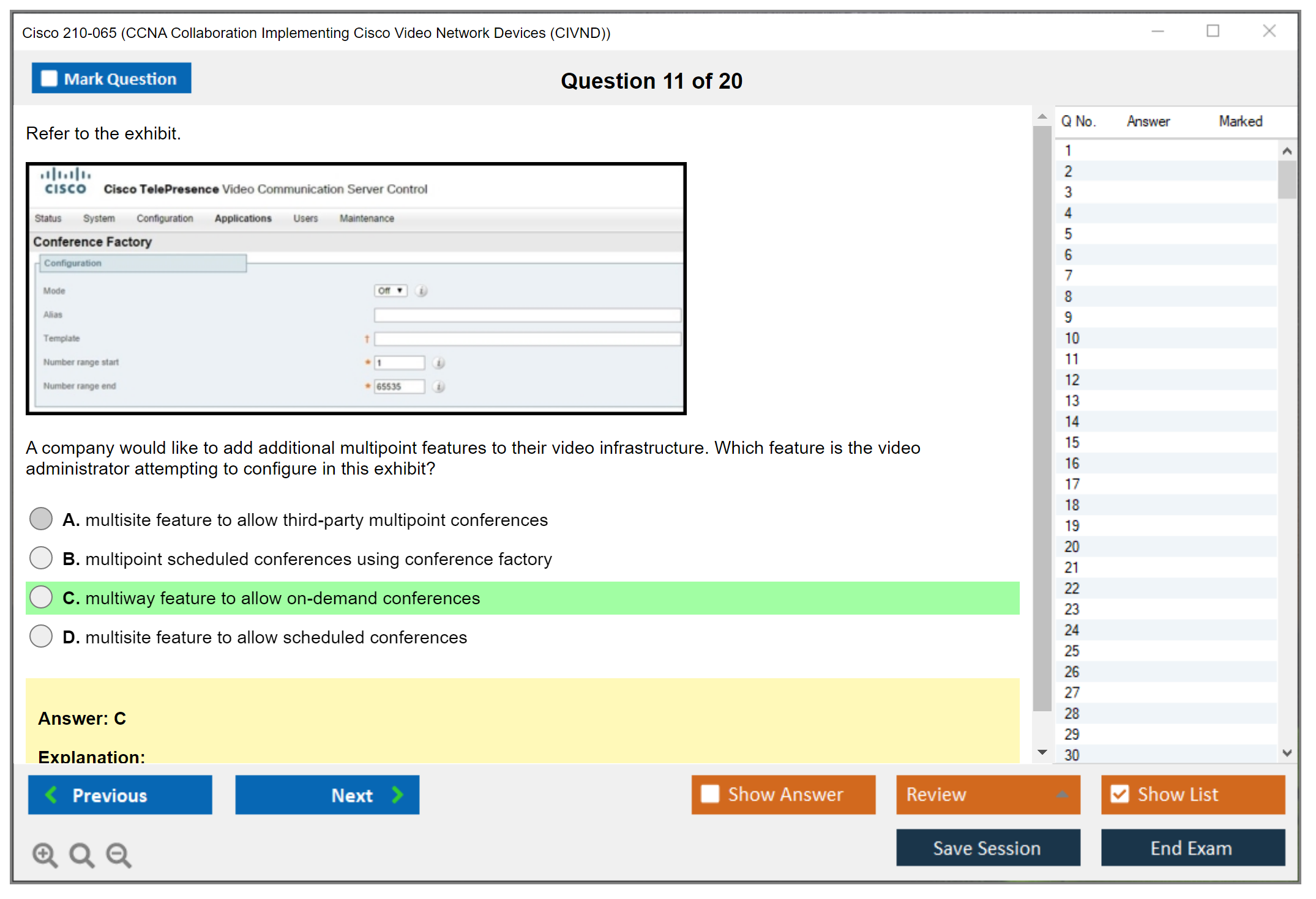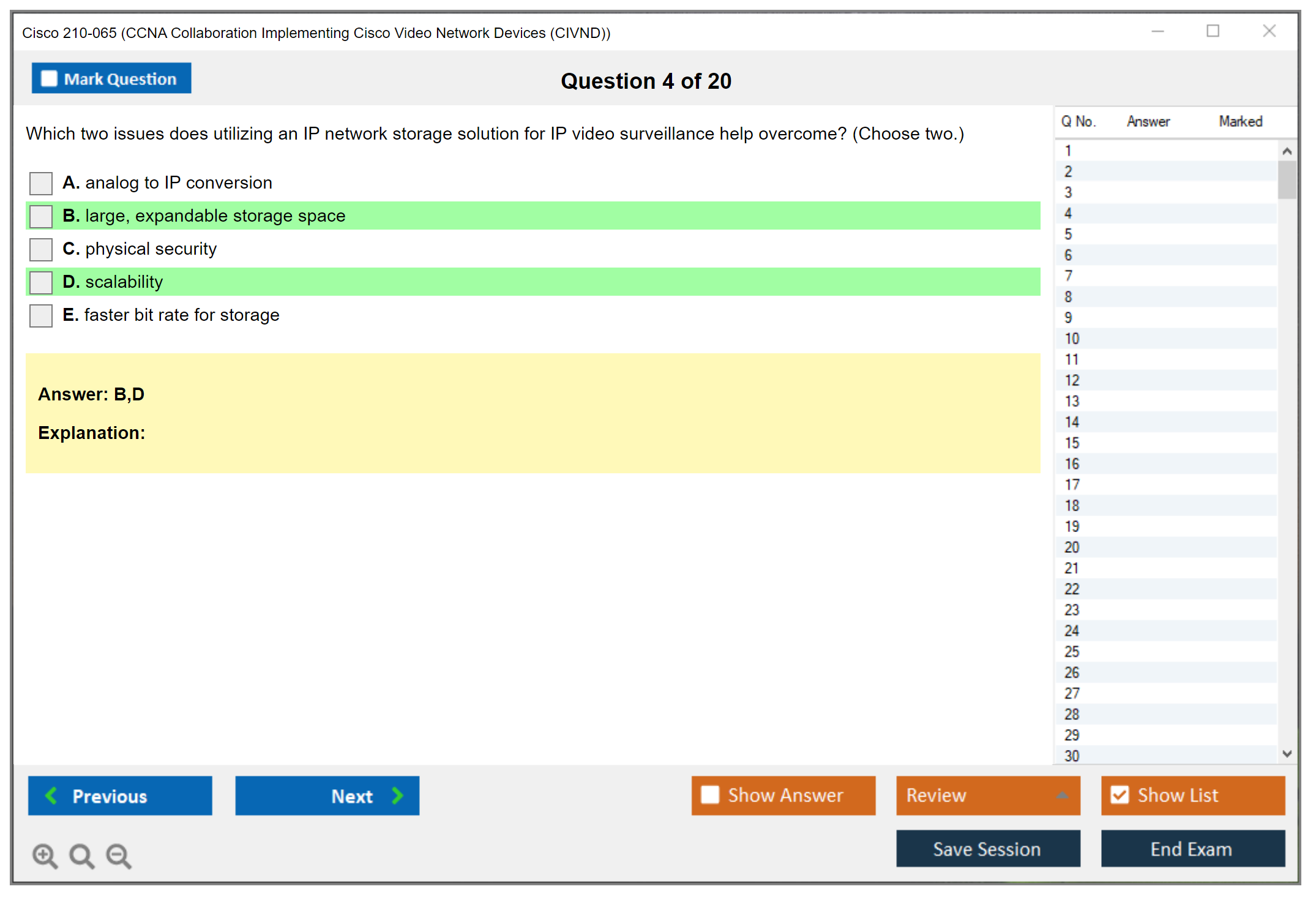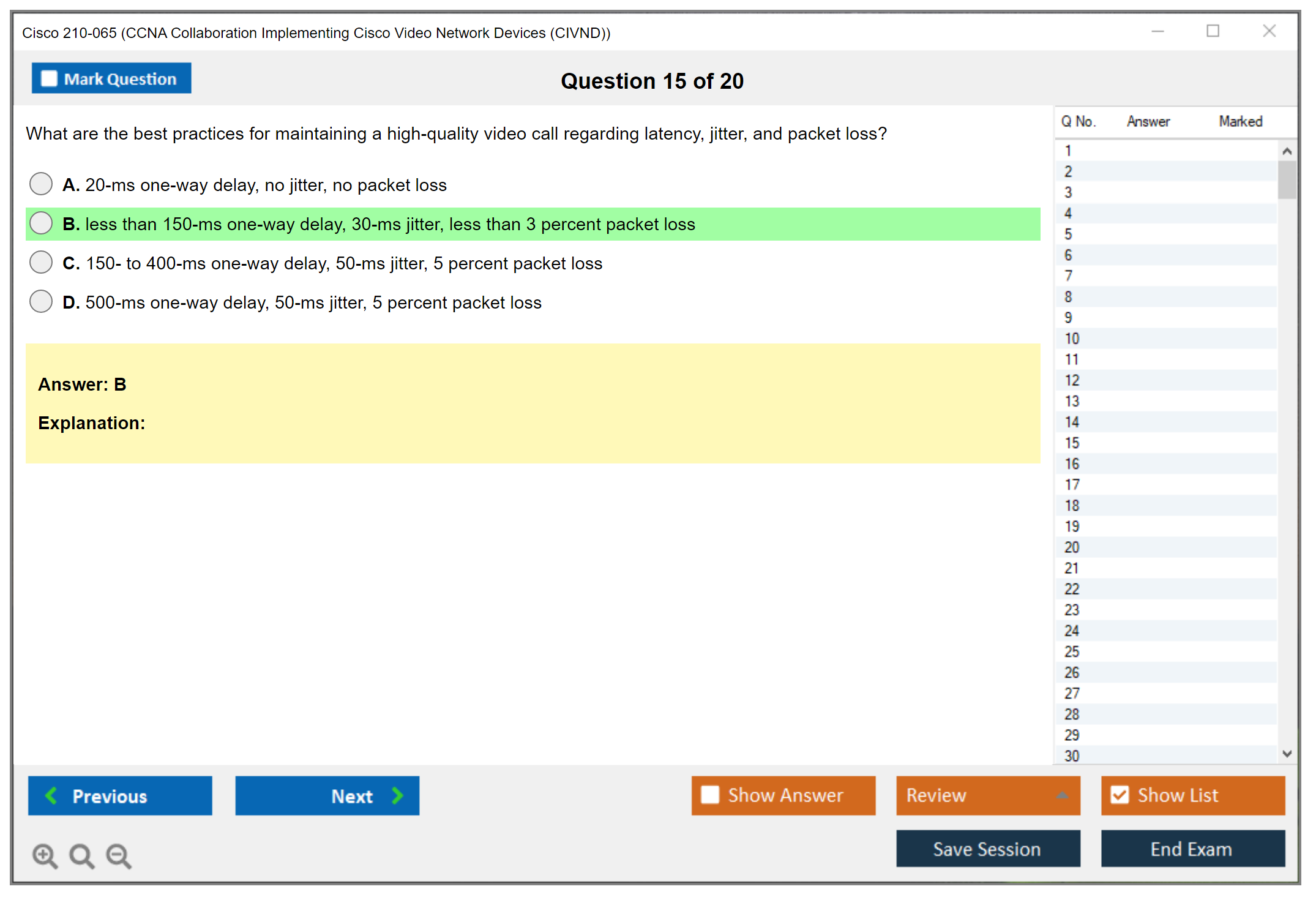 Note: Cisco 210-065 (CCNA Collaboration Implementing Cisco Video Network Devices (CIVND)) will not receive any new updates.