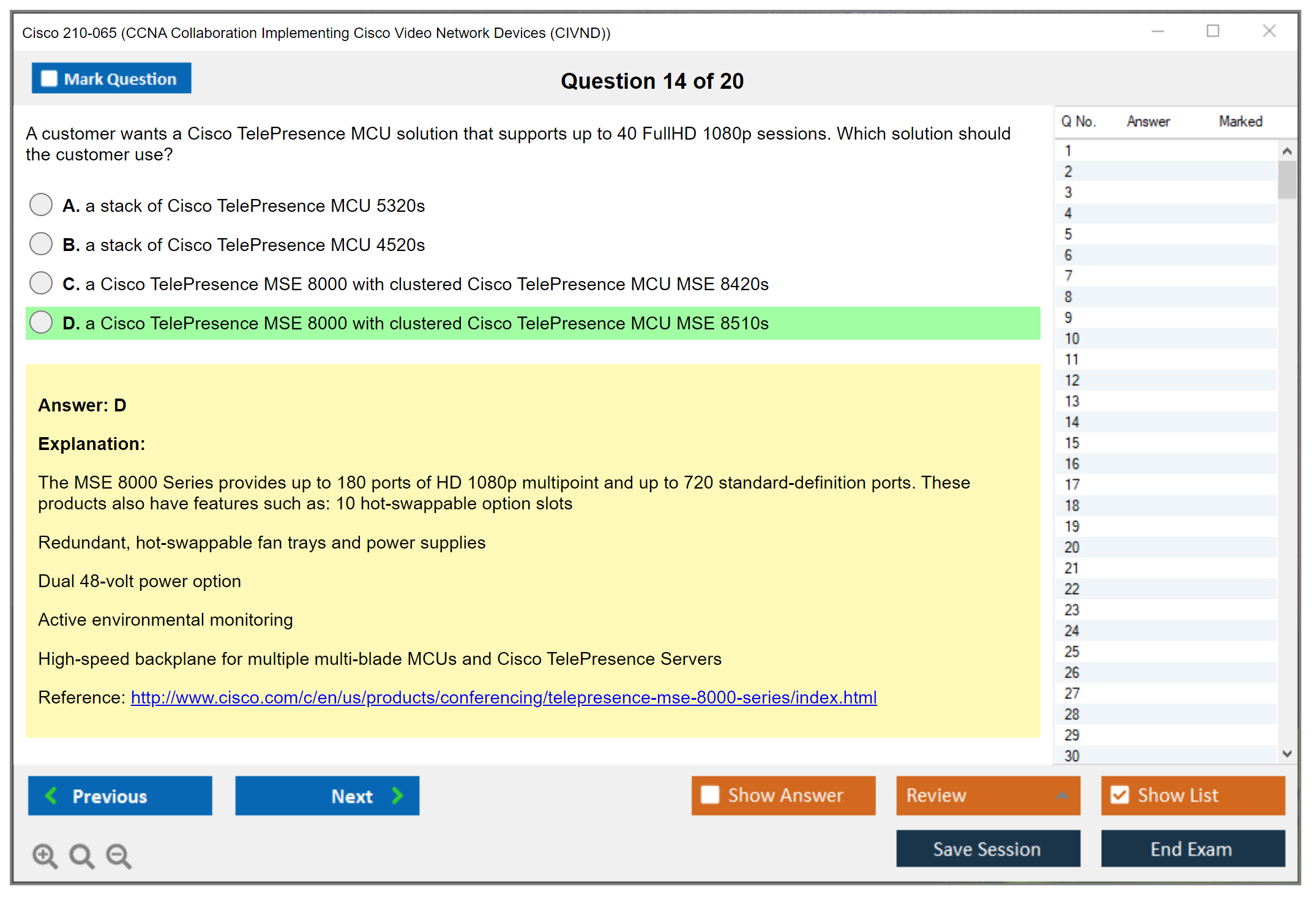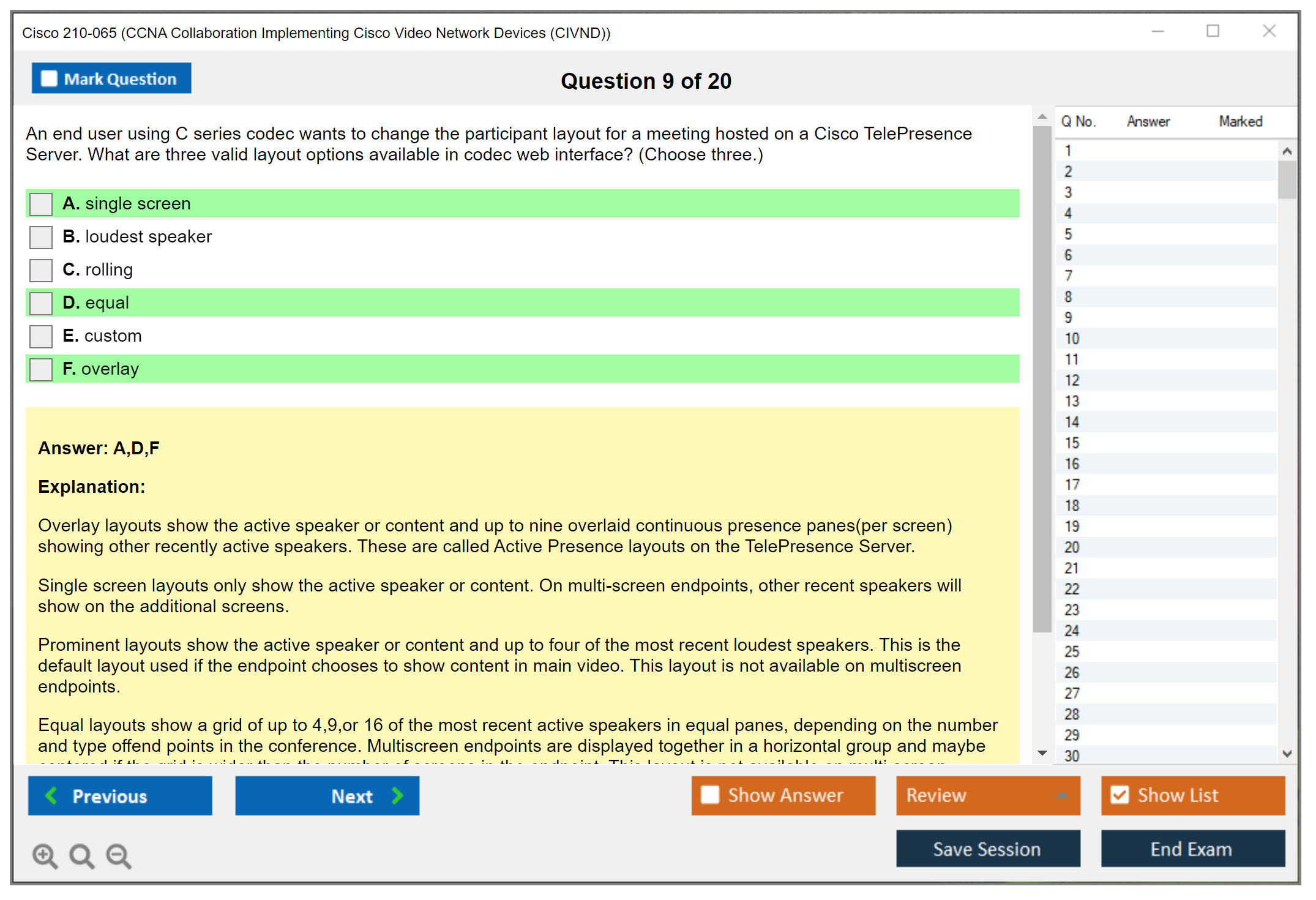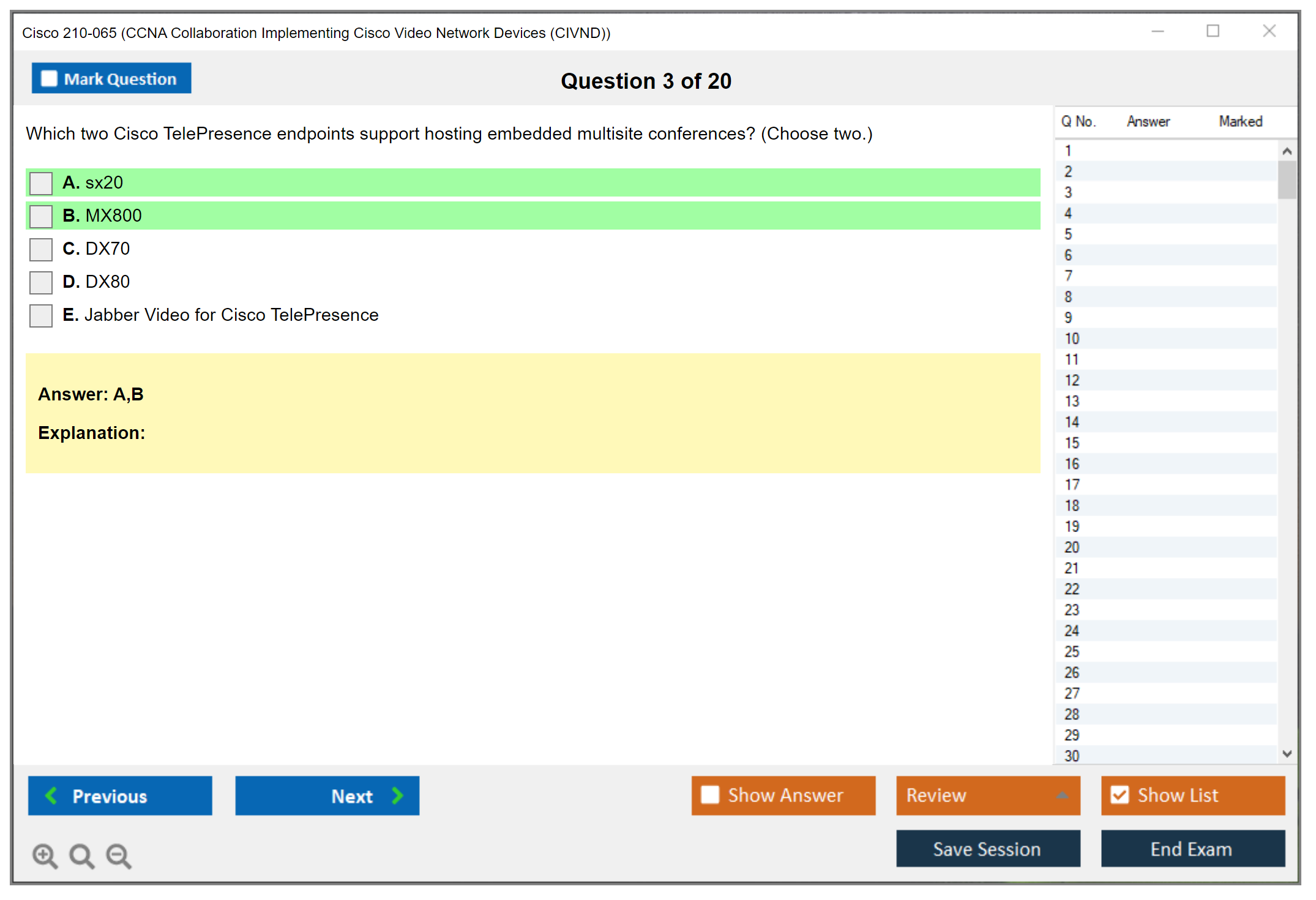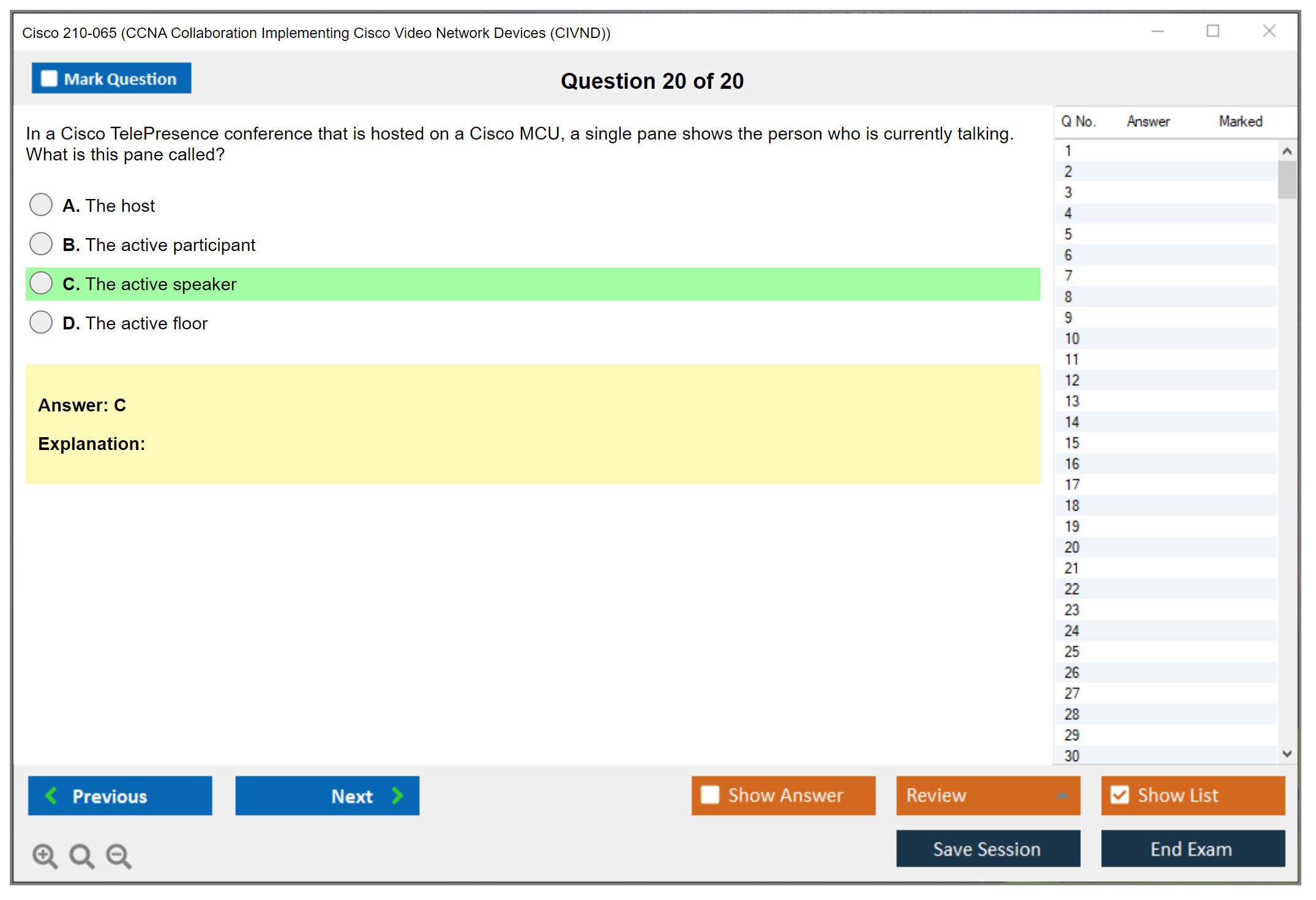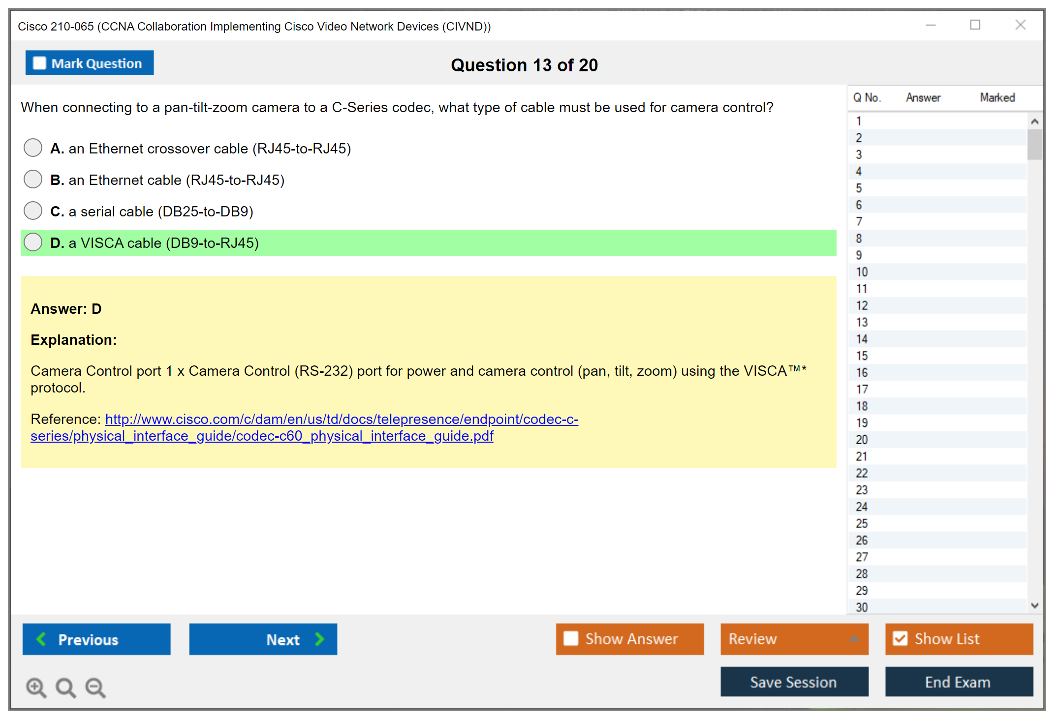 Note: Cisco 210-065 (CCNA Collaboration Implementing Cisco Video Network Devices (CIVND)) will not receive any new updates.
