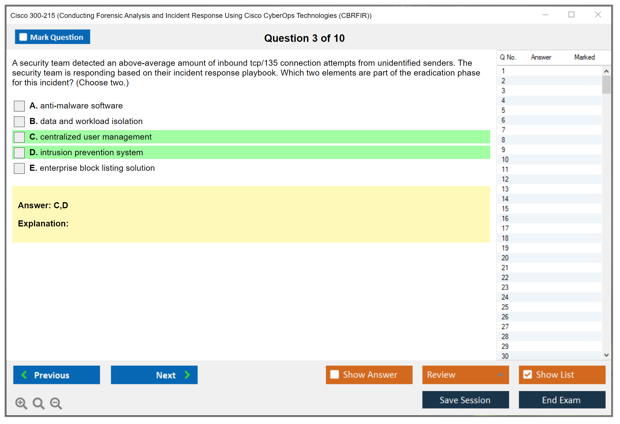 The Cisco 300-215 exam, also known as Conducting Forensic Analysis and Incident Response Using Cisco CyberOps Technologies (CBRFIR), is designed to test the knowledge and skills required to conduct forensic analysis and incident response using various Cisco cybersecurity technologies.