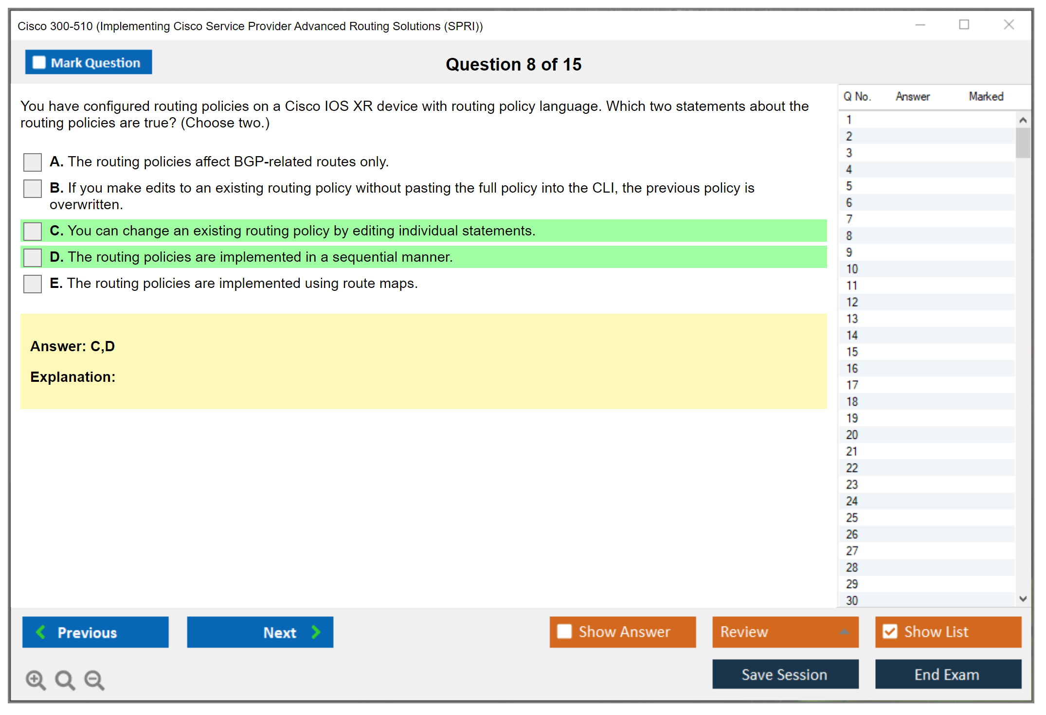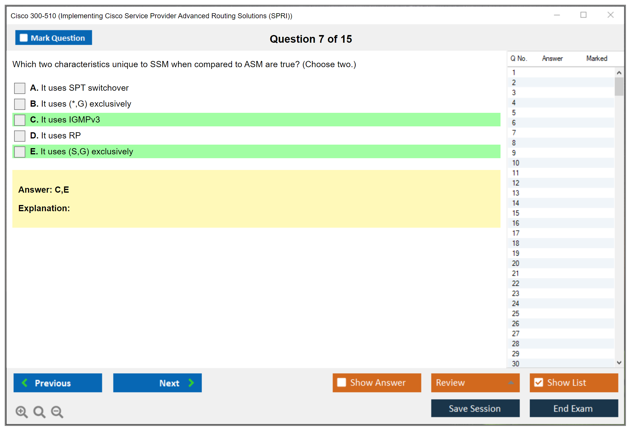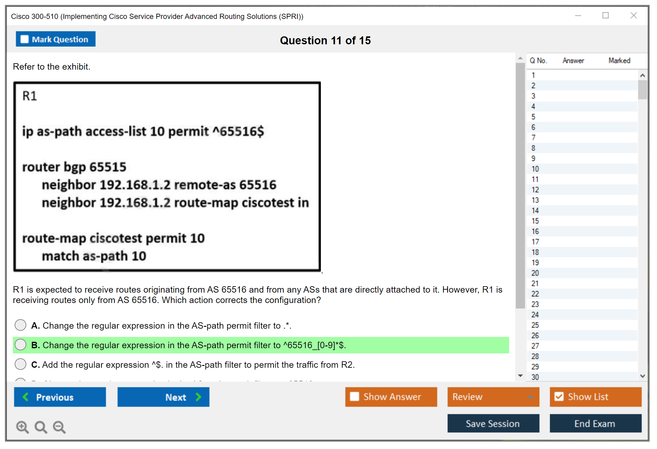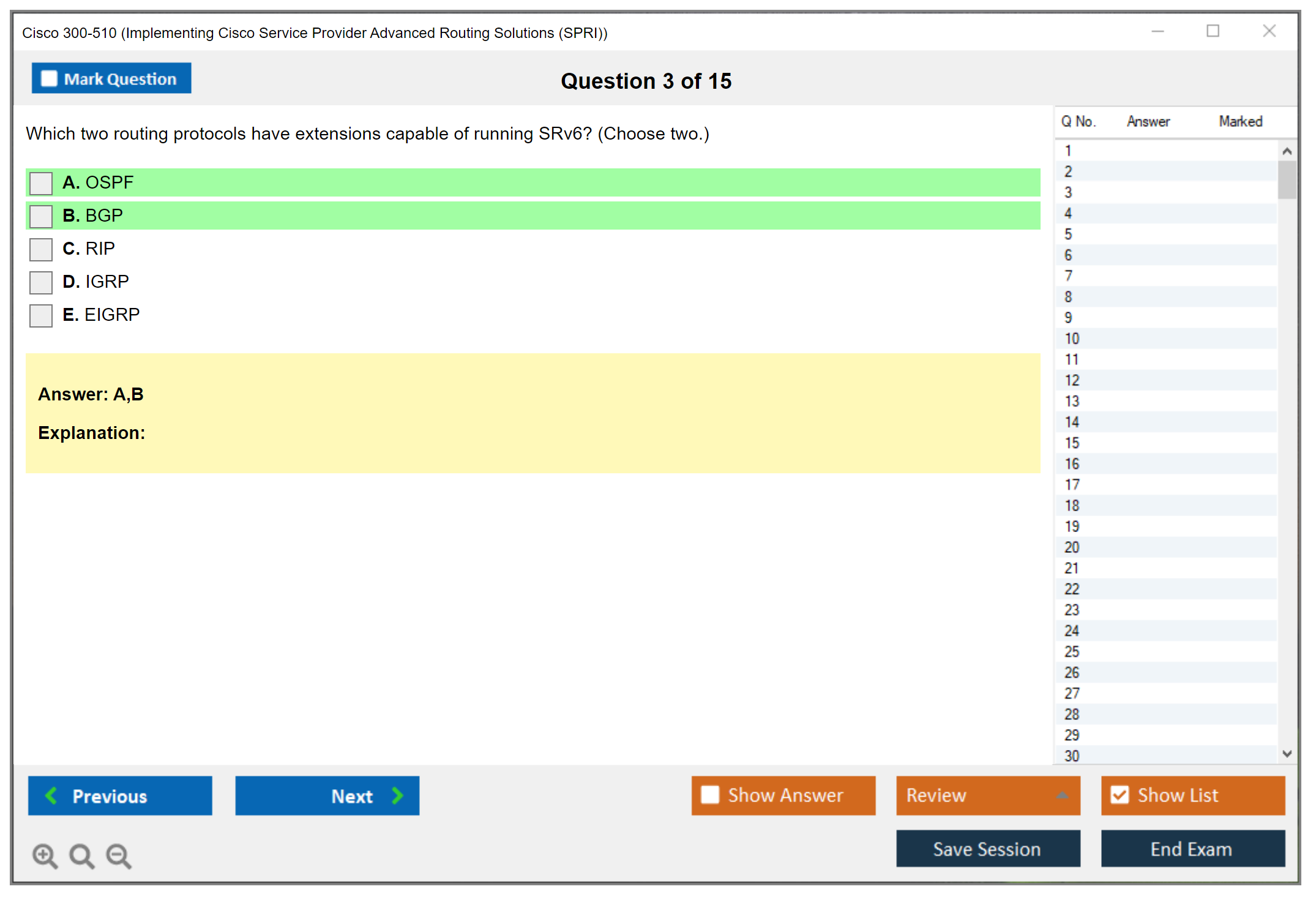 The Cisco 300-510 (Implementing Cisco Service Provider Advanced Routing Solutions (SPRI)) exam is a certification exam that tests a candidate's knowledge and skills related to implementing and troubleshooting advanced routing technologies and services in a service provider network.
