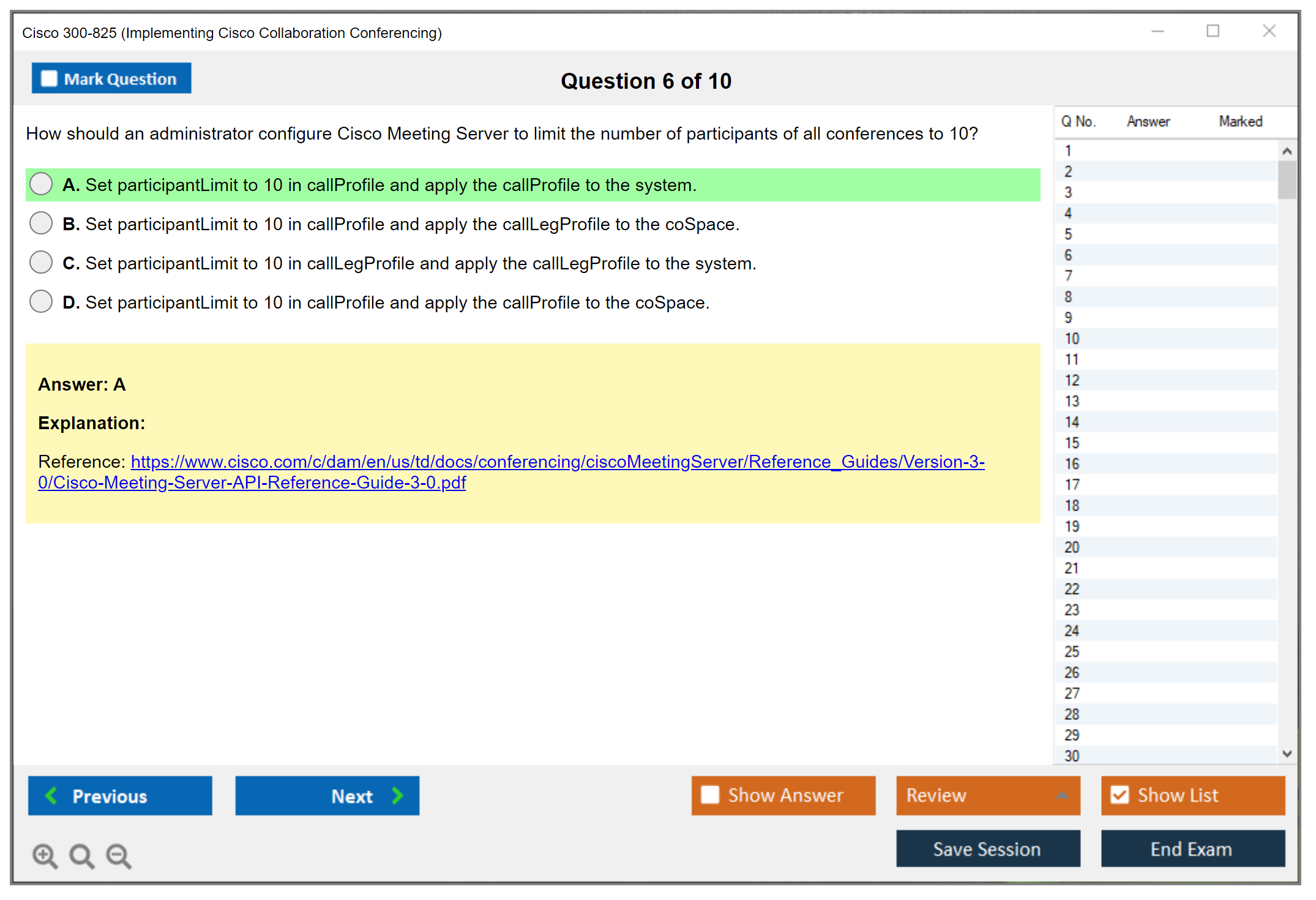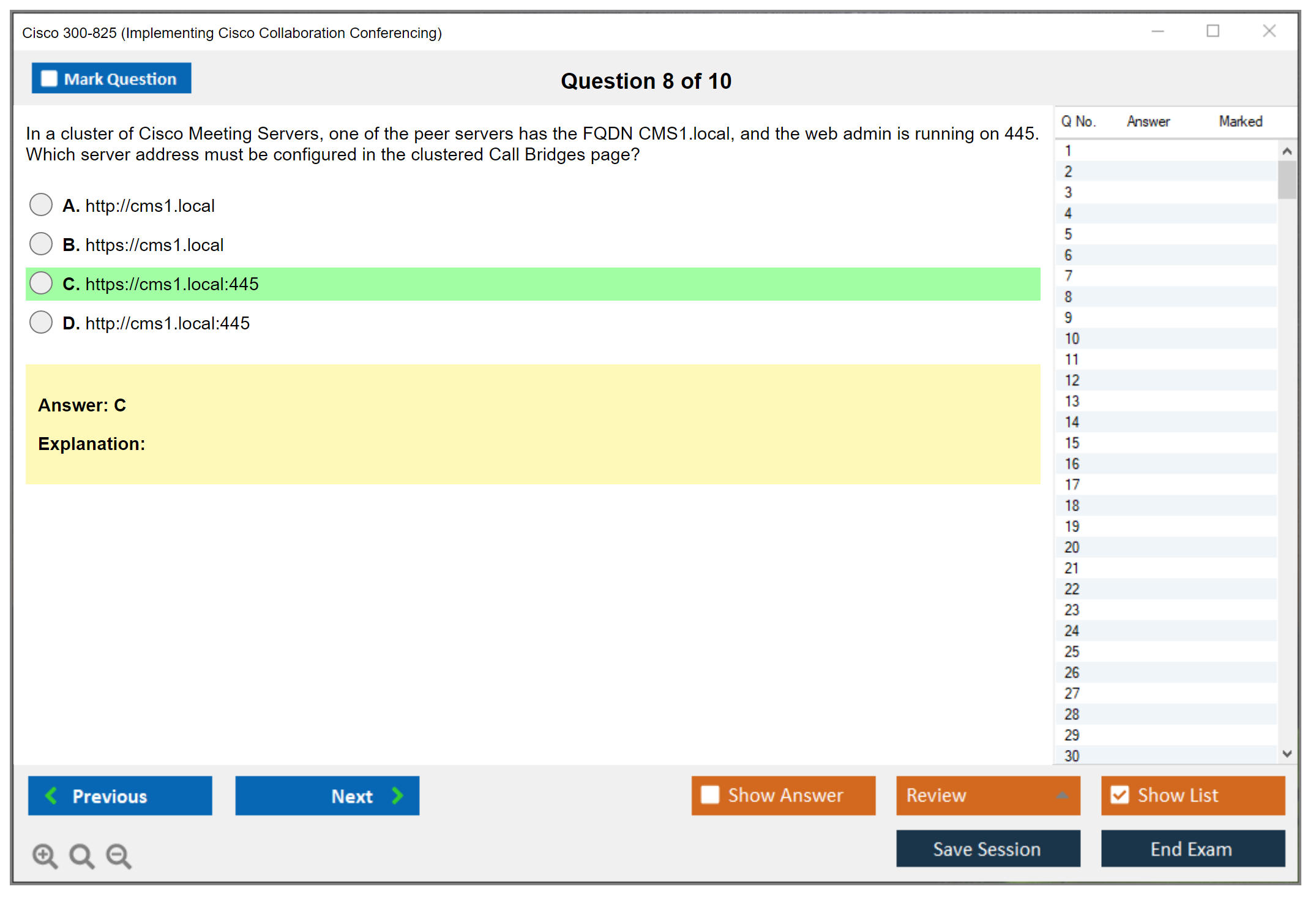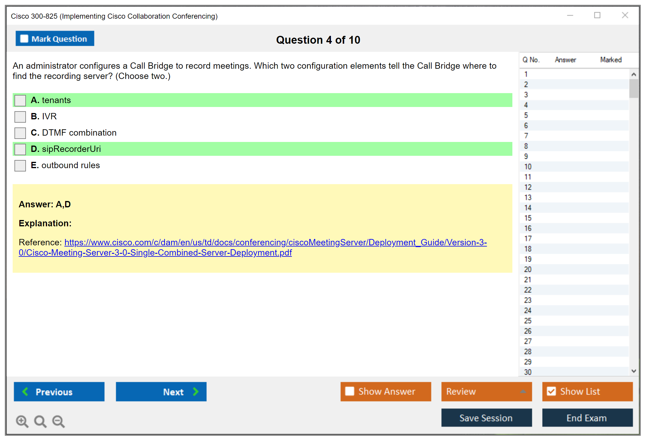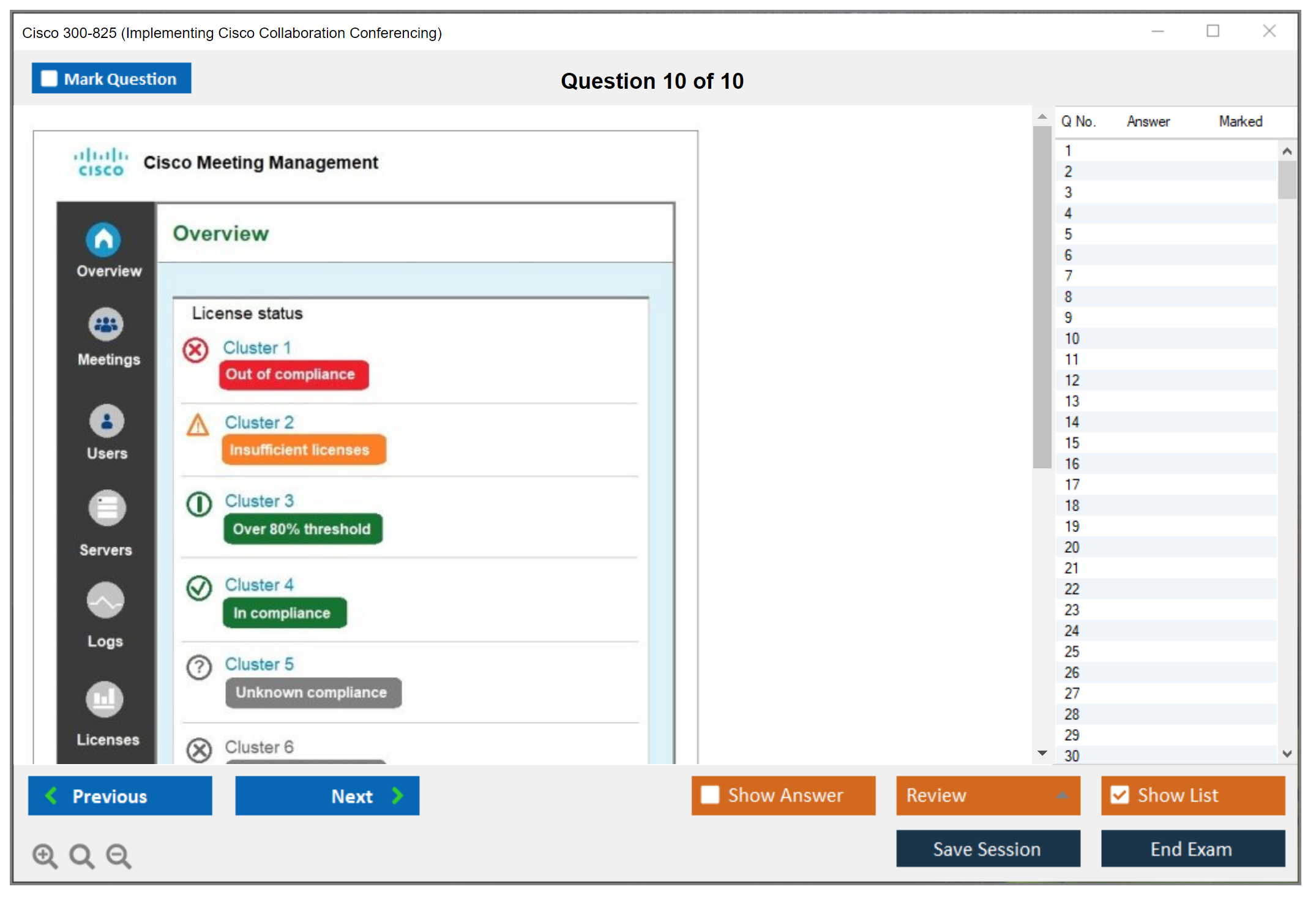 The Cisco 300-825 (Implementing Cisco Collaboration Conferencing (CLCNF)) exam is a certification exam that tests a candidate's knowledge and skills in implementing and supporting Cisco Collaboration Conferencing solutions, including on-premises conferencing, cloud-based conferencing, and hybrid conferencing deployments.