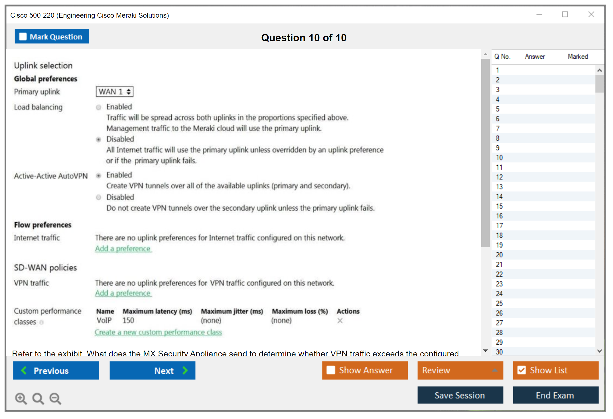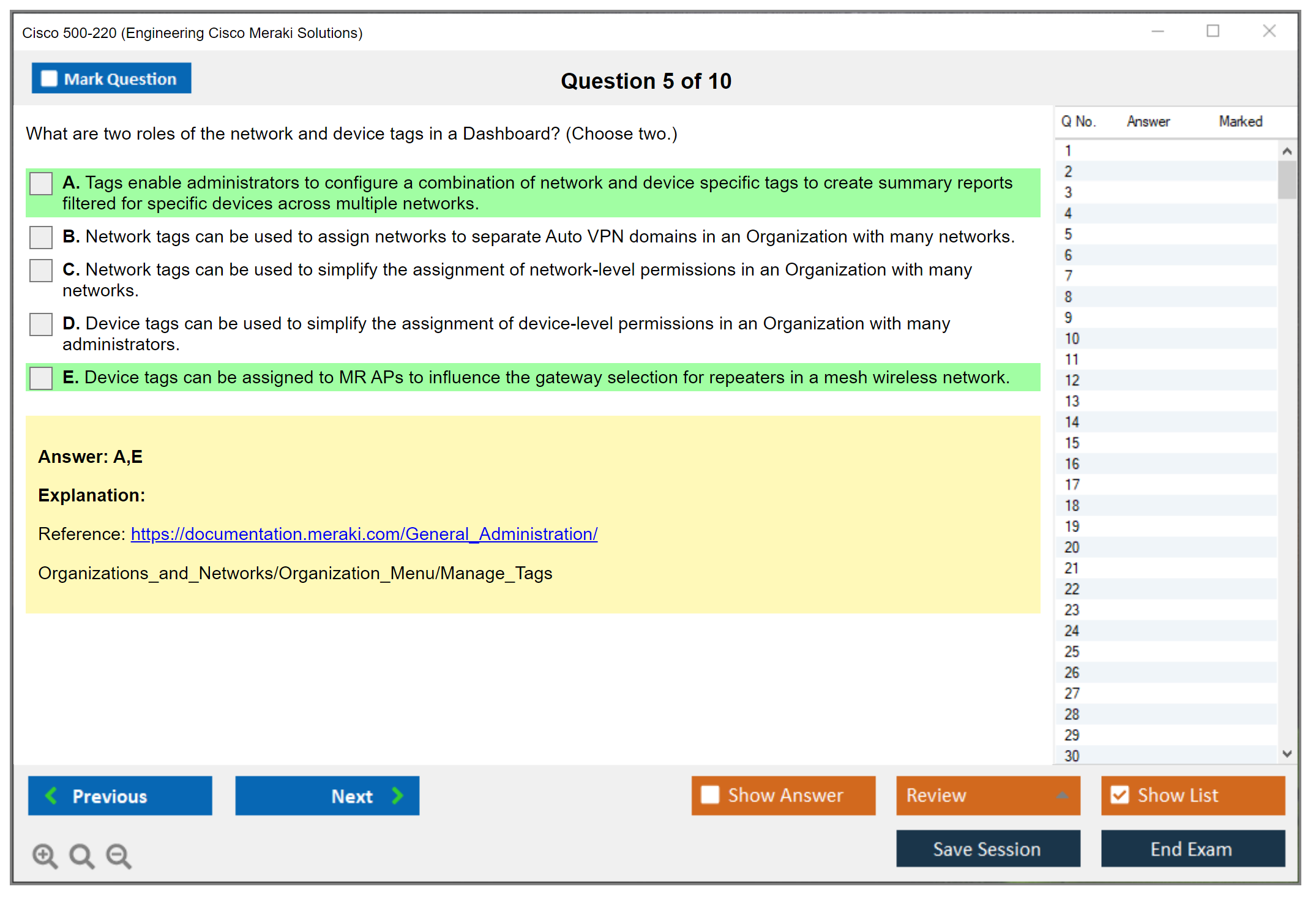 The Cisco 500-220 (Engineering Cisco Meraki Solutions (ECMS) v2.2) Exam is designed to test a candidate's knowledge and skills in deploying, configuring, and troubleshooting Cisco Meraki solutions.