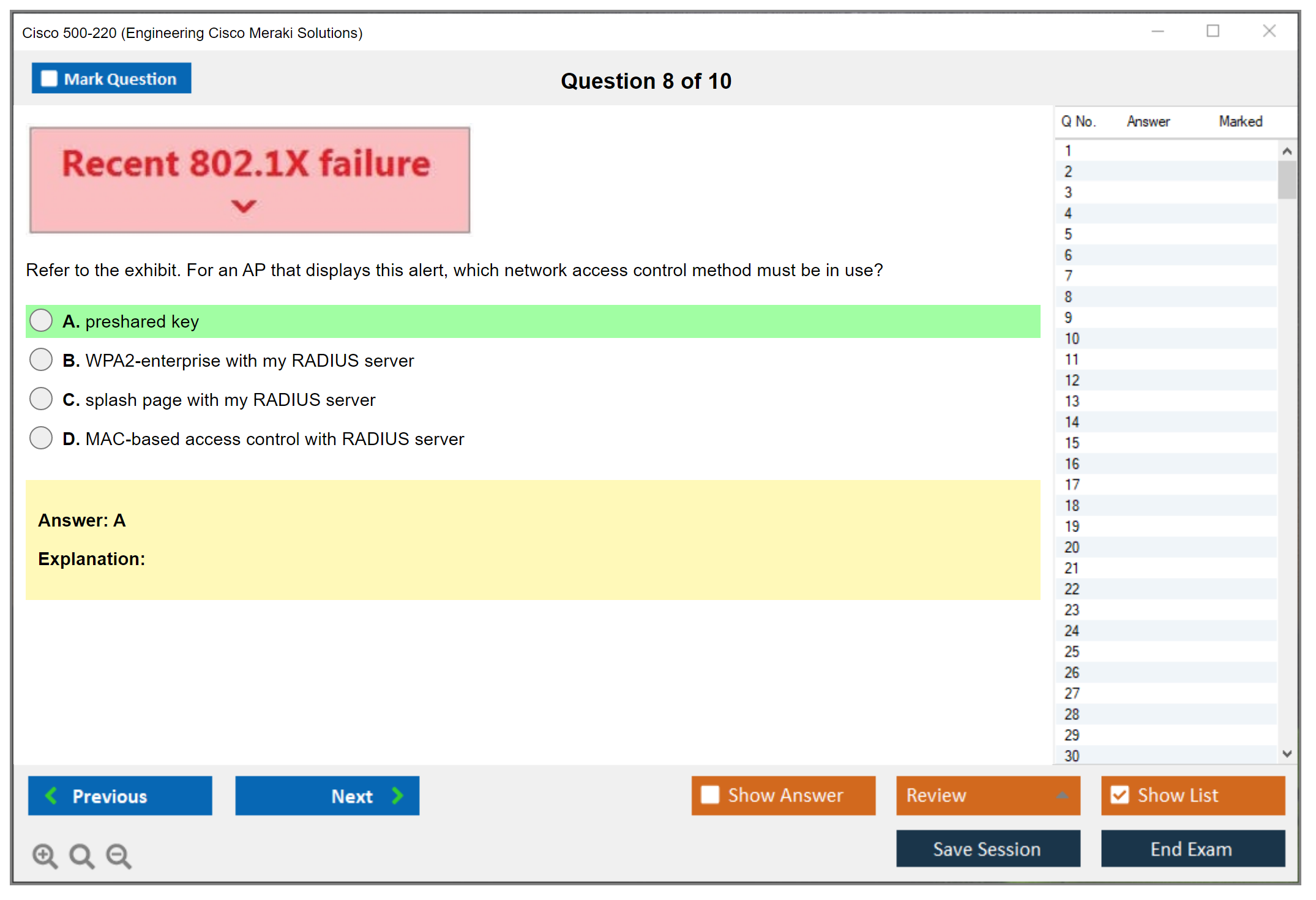 There are no formal prerequisites for the Cisco 500-220 Exam, but it is recommended that candidates have a solid understanding of networking concepts and experience with Cisco Meraki solutions.