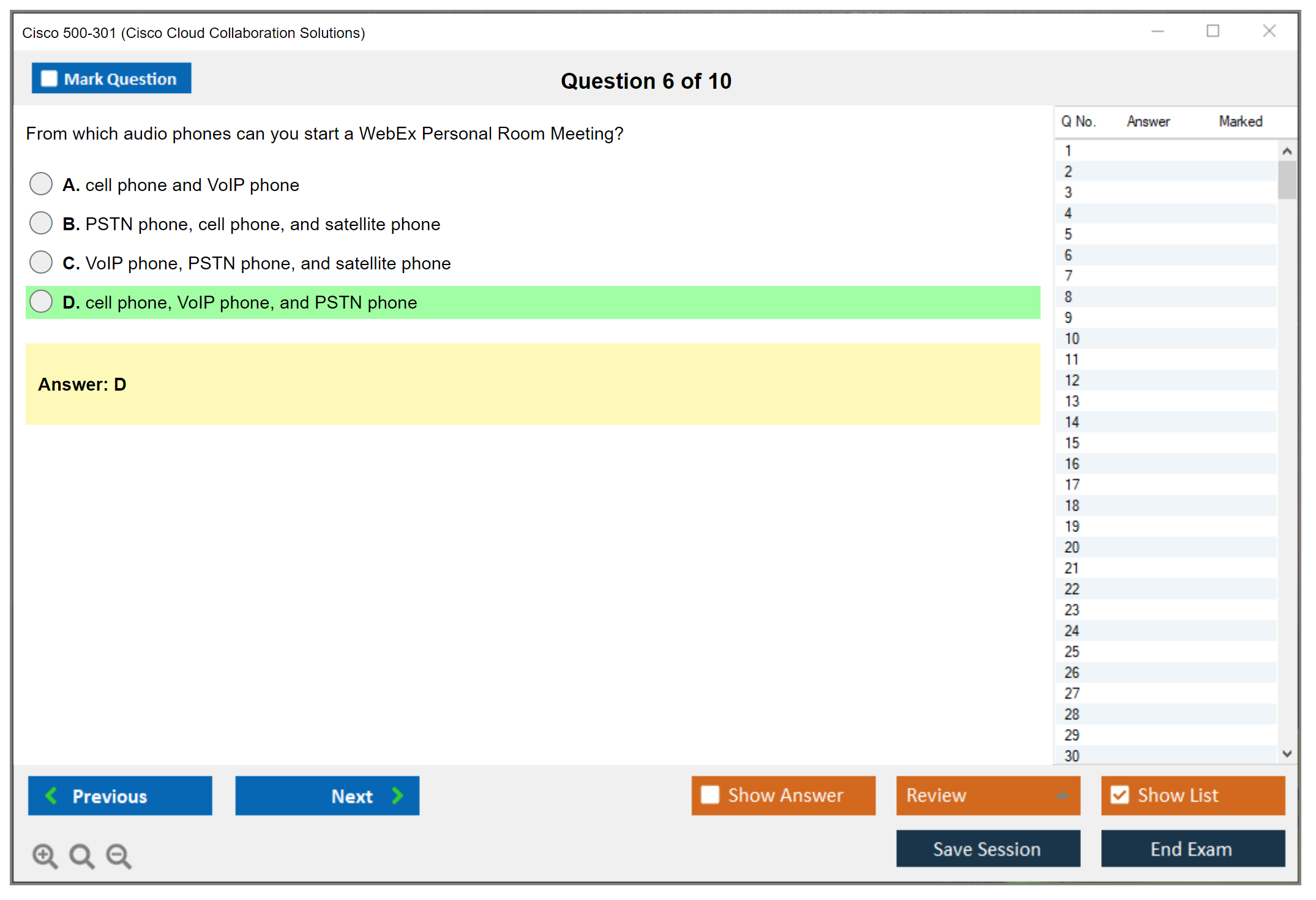 The Cisco 500-301 (Cisco Cloud Collaboration Solutions) exam is designed to validate the knowledge and skills of professionals in implementing, configuring, and troubleshooting Cisco cloud collaboration solutions.