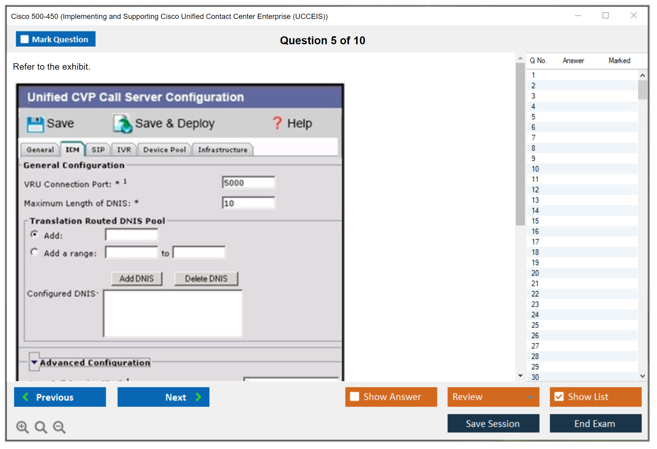 The Cisco 500-450 (Implementing and Supporting Cisco Unified Contact Center Enterprise (UCCEIS)) exam is designed to test a candidate's knowledge and skills required to implement and support Cisco Unified Contact Center Enterprise solutions.
