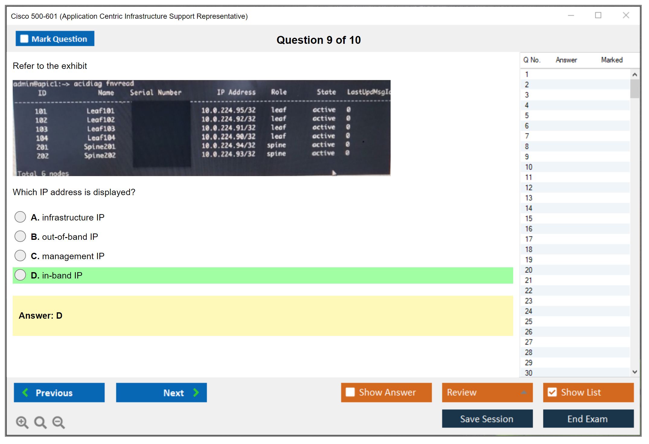 The Cisco 500-601 Exam assesses a candidate's ability to support and troubleshoot Cisco's Application Centric Infrastructure (ACI) solutions. It is aimed at professionals who are responsible for the implementation and support of ACI solutions.
