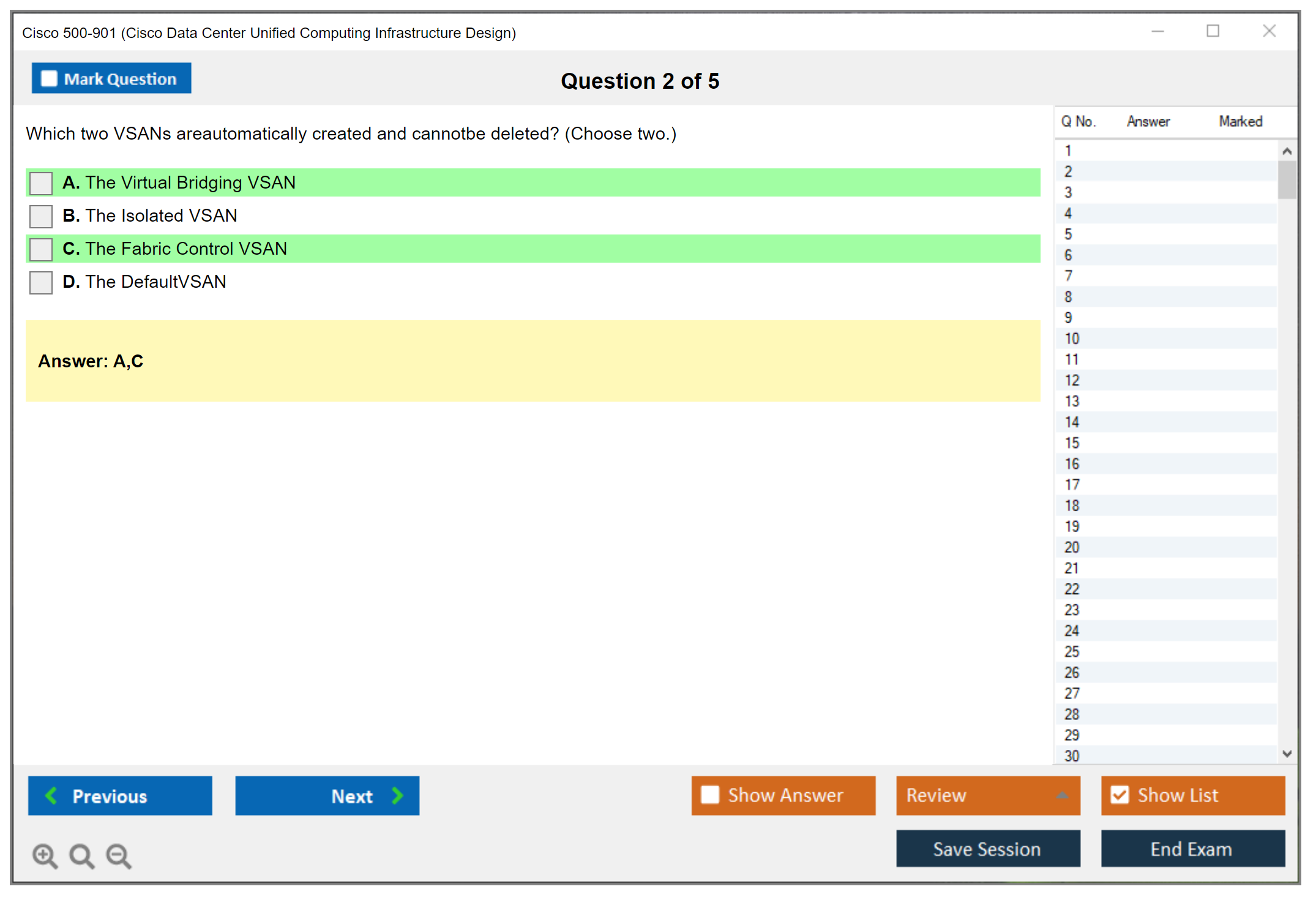 The Cisco 500-901 (Cisco Data Center Unified Computing Infrastructure Design (DCICUC)) exam is designed for professionals aiming to validate their skills and knowledge in designing data center unified computing infrastructures. It focuses on various aspects like network, storage, and computing components in a data center environment.