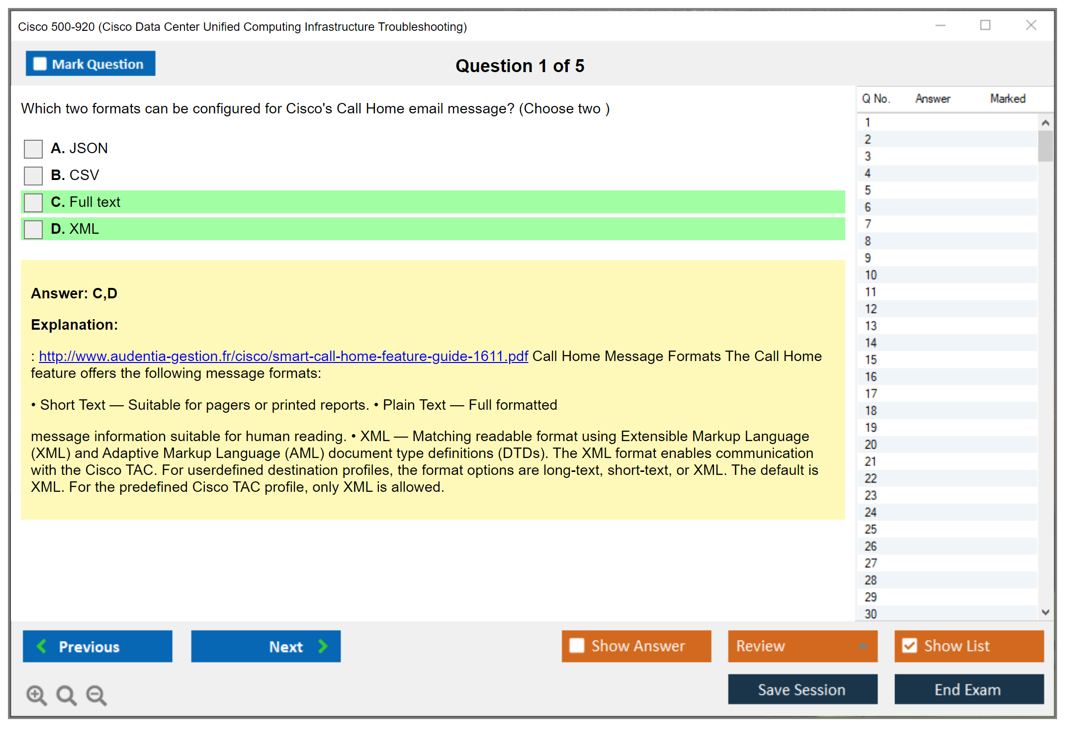 The question format of the Cisco 500-920 Exam includes multiple-choice questions, drag-and-drop, and simulation-based questions.