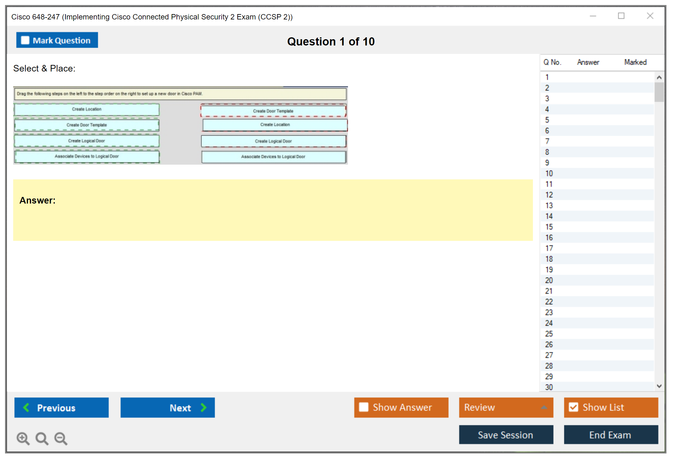 The Cisco 648-247 (Implementing Cisco Connected Physical Security 2 Exam) is designed to test the knowledge and skills required to implement Cisco's physical security solutions. It covers a range of topics including video surveillance, access control, and other physical security technologies.