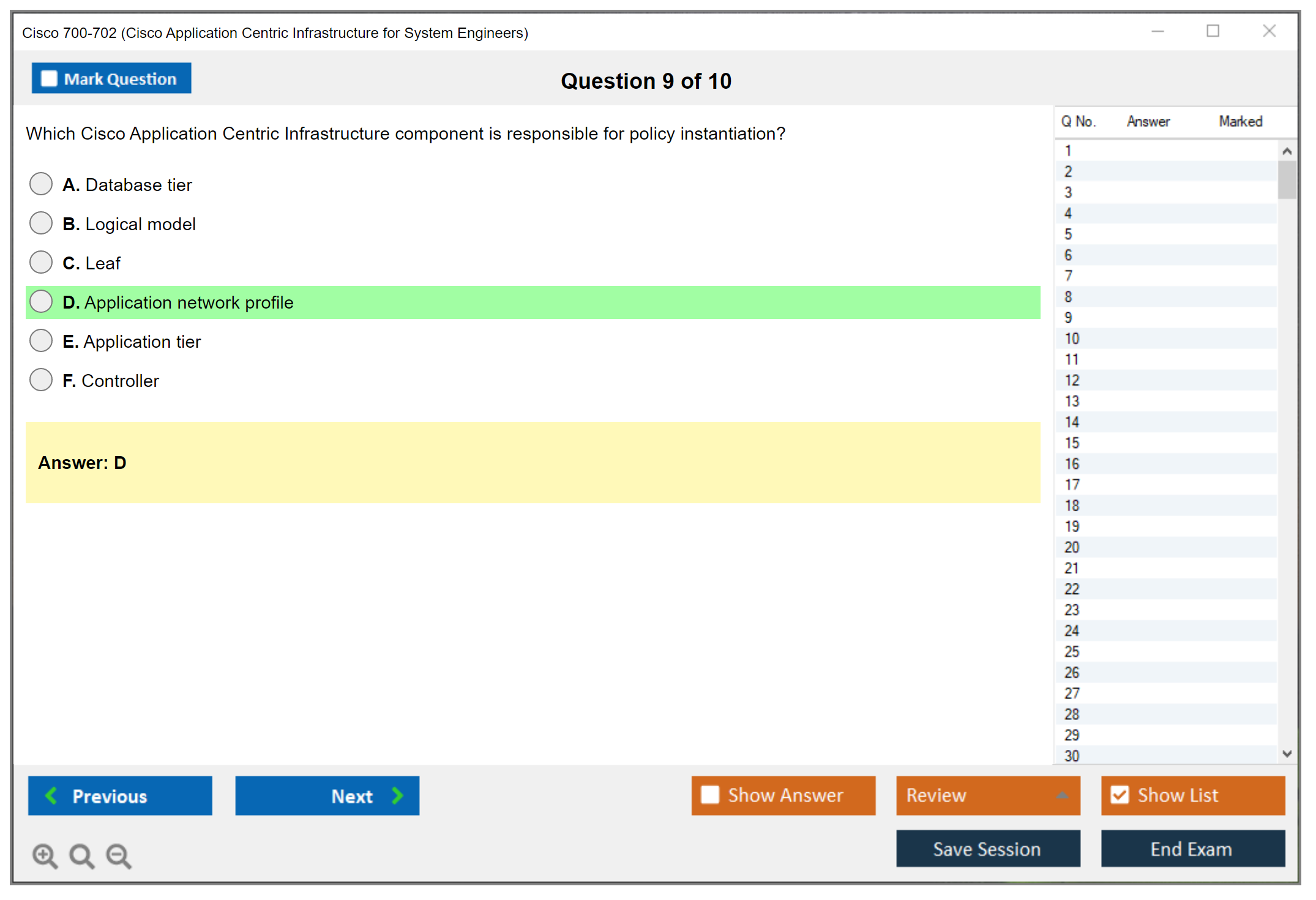 The Cisco 700-702 (Cisco Application Centric Infrastructure for System Engineers) Exam is designed to validate the knowledge and skills of system engineers in implementing and managing Cisco's Application Centric Infrastructure (ACI). This exam covers topics such as ACI architecture, configuration, and troubleshooting.