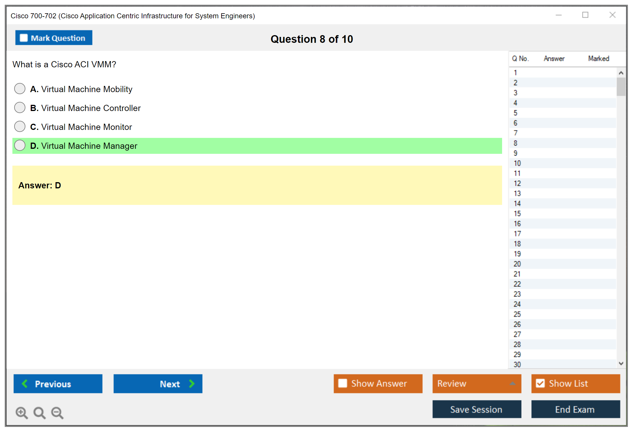 The question format of the Cisco 700-702 Exam includes multiple-choice questions, drag-and-drop, and simulations. The format is designed to test both theoretical knowledge and practical skills.