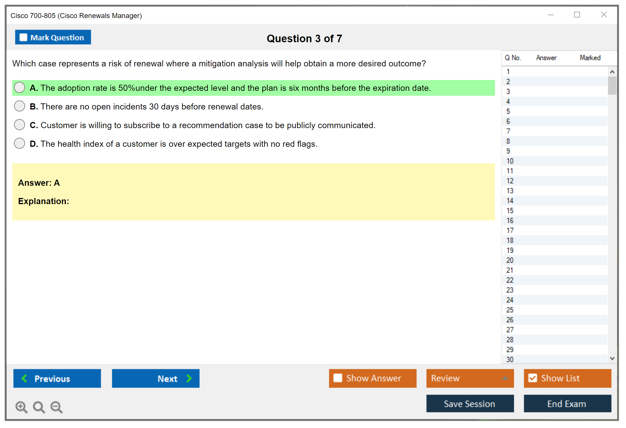 The Cisco 700-805 (Cisco Renewals Manager (700-805 CRM)) exam is designed to validate the knowledge and skills of individuals responsible for managing customer renewals. It covers topics such as customer engagement, renewal management processes, and the use of Cisco tools and resources.