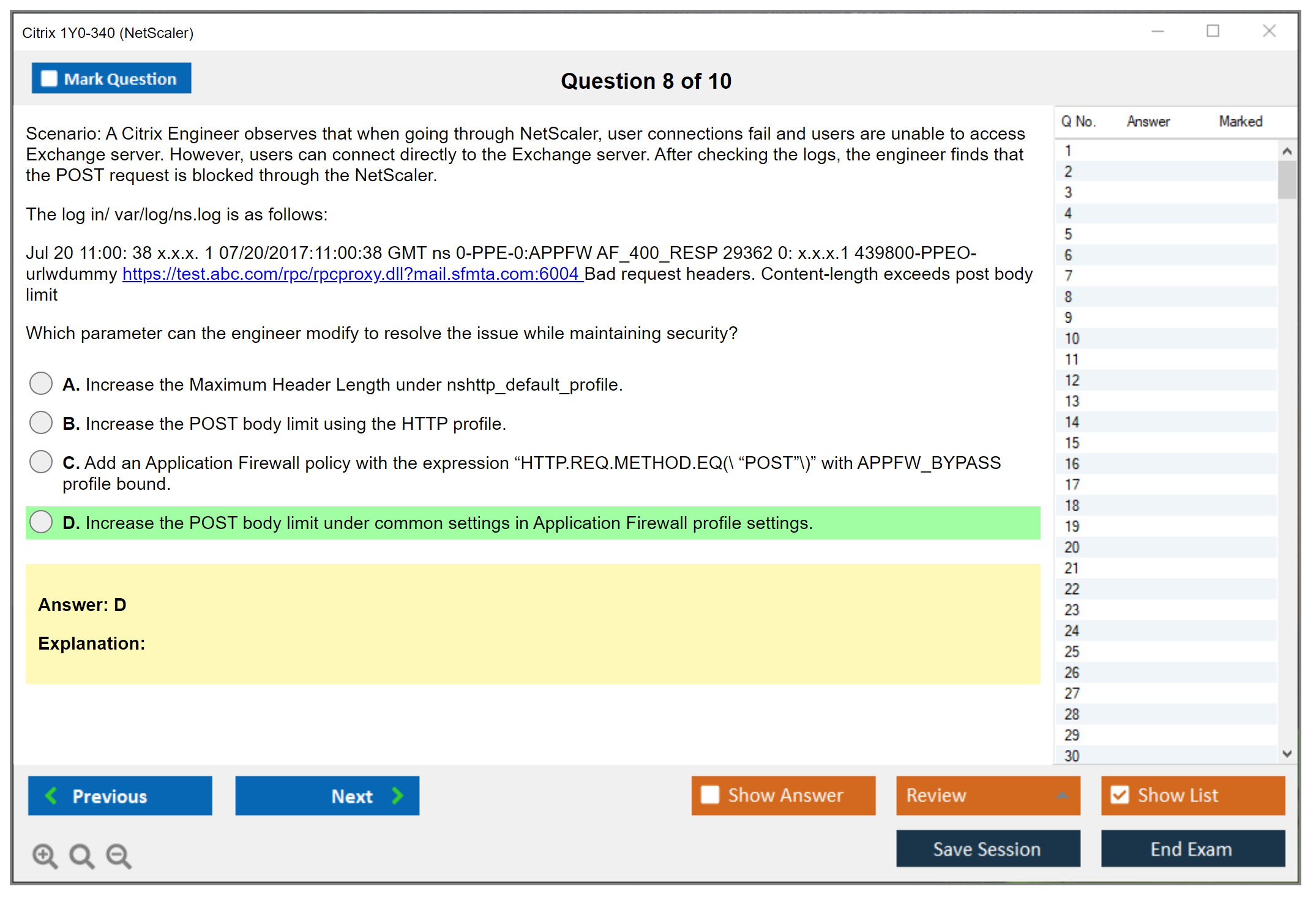 The Citrix 1Y0-340 exam, also known as Citrix NetScaler Advanced Topics – Security, Management, and Optimization, is designed for IT professionals who manage and support Citrix NetScaler environments.