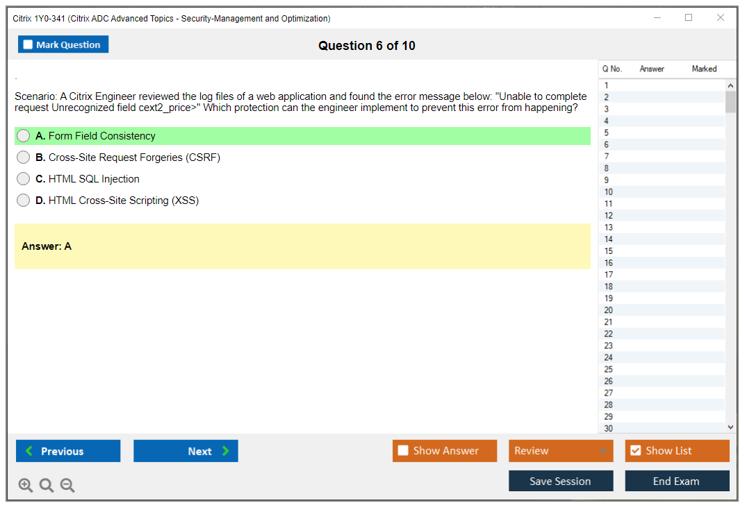 What is the Question Format of Citrix 1Y0-341 Exam?