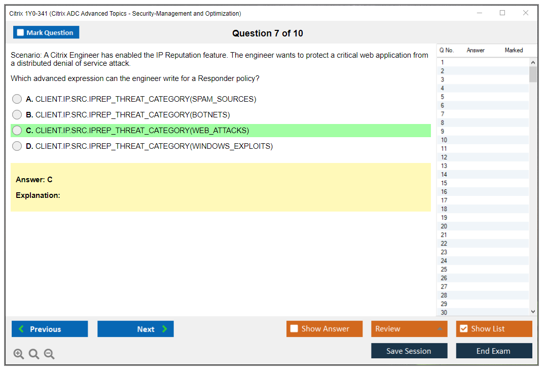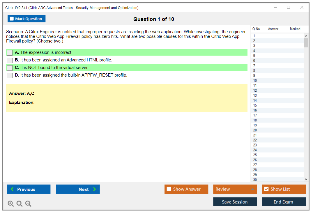 The Citrix 1Y0-341 exam is a certification test for IT professionals who want to demonstrate their advanced skills in managing and optimizing Citrix ADC environments. This exam covers topics such as security features, traffic management, and monitoring and optimization of Citrix ADC.