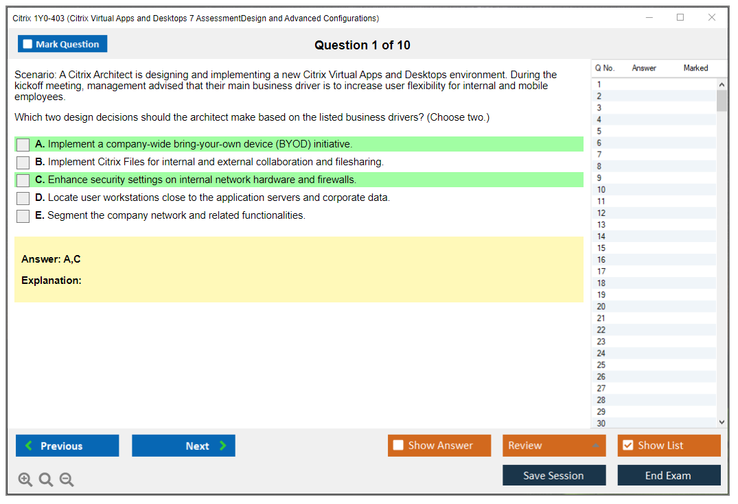 The Citrix 1Y0-403 exam, also known as Citrix Virtual Apps and Desktops 7 Assessment Design and Advanced Configurations, is designed to test the knowledge and skills required to assess, design, and configure advanced settings for Citrix Virtual Apps and Desktops 7 environments.