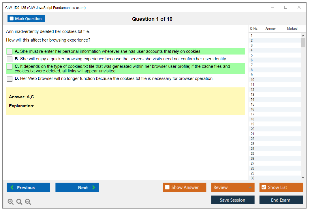 The CIW 1D0-435 exam is part of the CIW Web Development series and focuses on JavaScript, a key scripting language used for creating dynamic and interactive web pages. The exam assesses the candidate's ability to write and troubleshoot JavaScript code effectively.