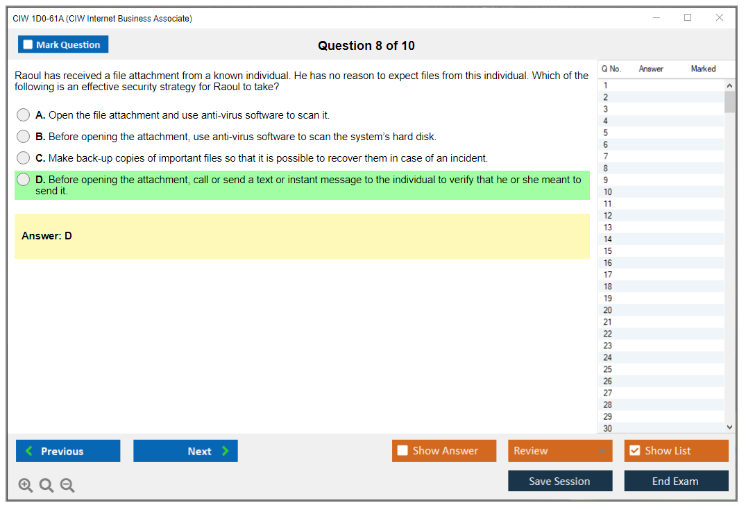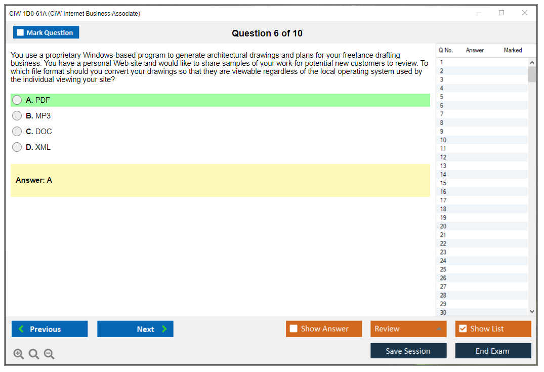 The CIW 1D0-61A (Internet Business Associate) Exam is designed to test the knowledge and skills of individuals regarding fundamental aspects of internet business. This includes understanding internet connection methods, web browsers, internet security, and more.