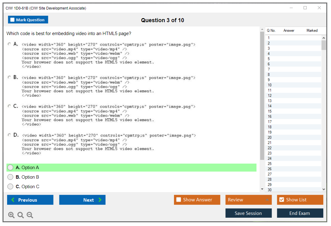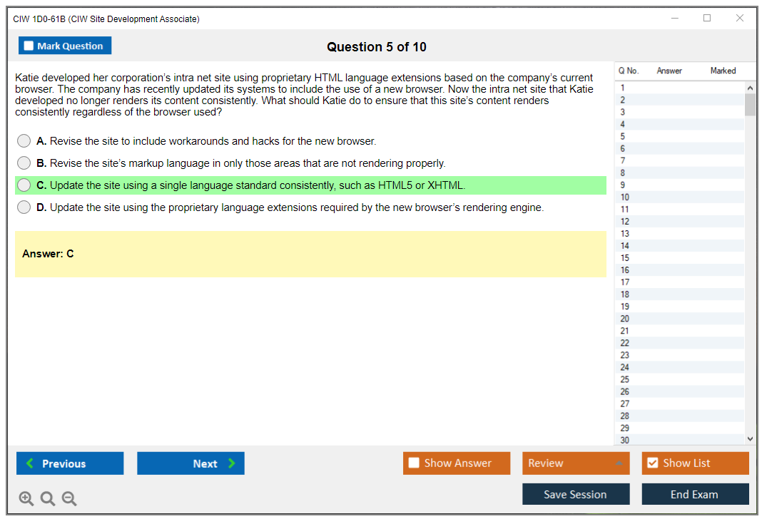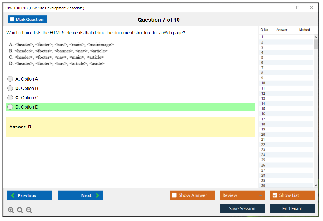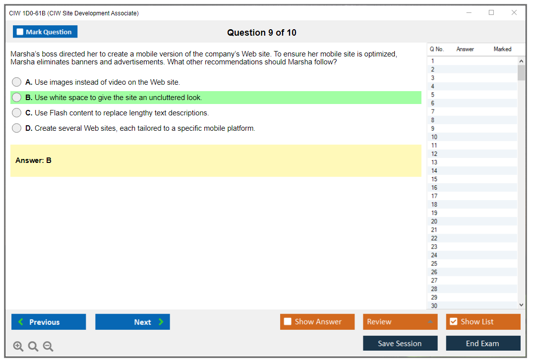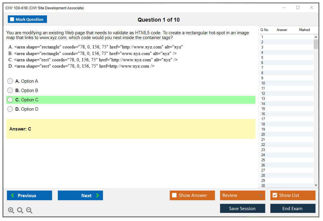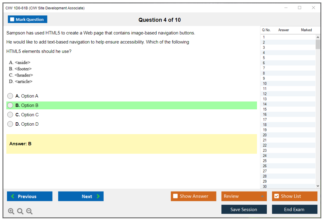 The CIW 1D0-61B Exam consists of 30 questions.