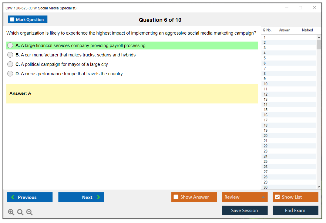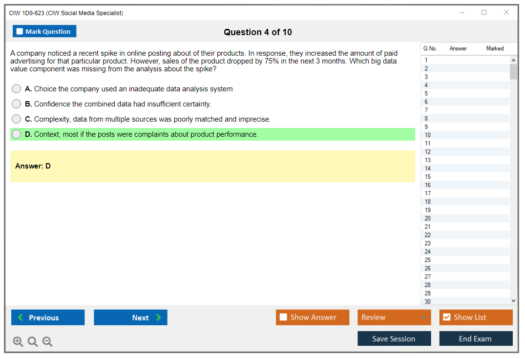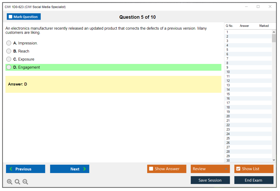 The CIW 1D0-623 Exam is a certification exam for individuals aiming to become proficient in social media strategy. It covers a variety of topics such as social media platforms, social media metrics, and the development of social media campaigns.