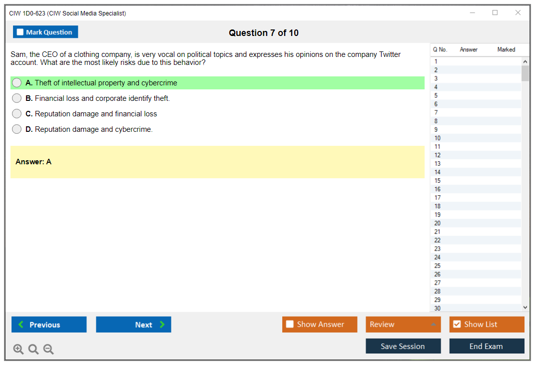 The CIW 1D0-623 (Social Media Strategist) exam is designed to test an individual's knowledge and skills in social media strategy, including the creation and management of social media campaigns, analysis of social media metrics, and understanding of social media legal issues.