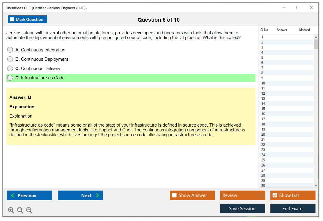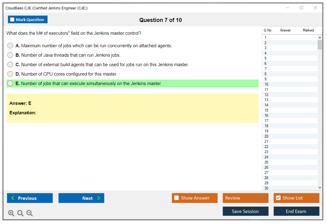 The CloudBees Certified Jenkins Engineer (CJE) exam is designed to validate the skills and knowledge of professionals using Jenkins, a popular open-source automation server. The certification demonstrates expertise in Jenkins setup, configuration, and management.