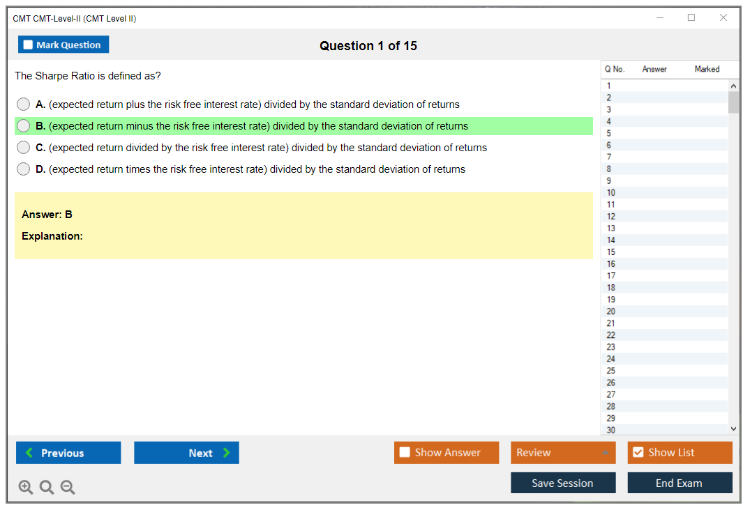 What are the Sample Questions of CMT CMT-Level-II Exam?