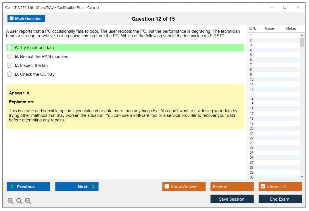 The question format of the CompTIA 220-1101 Exam includes multiple-choice questions (single and multiple response), drag-and-drop questions, and performance-based questions.