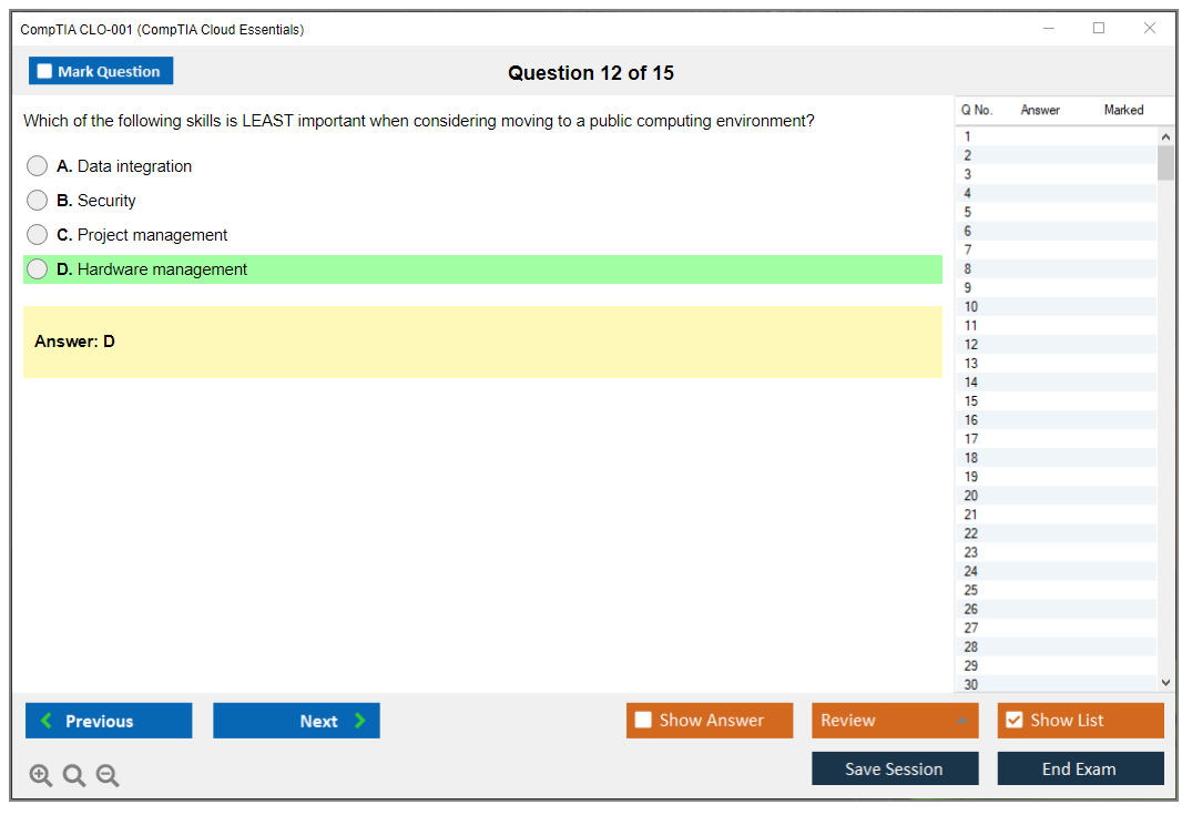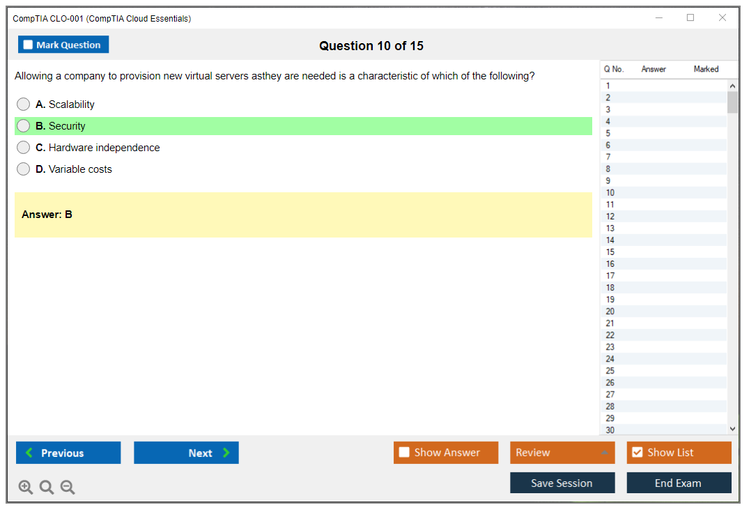 The CompTIA CLO-001 exam consists of 50 multiple-choice questions.