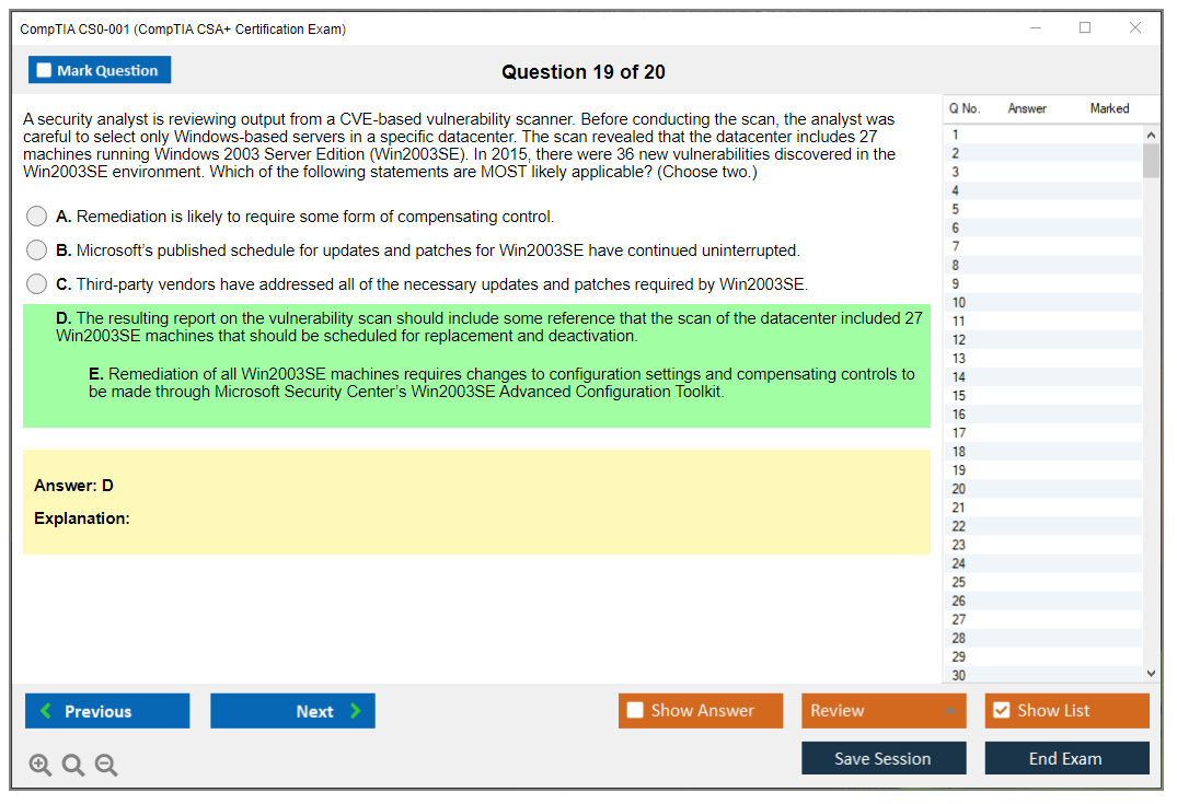 Note: CompTIA CS0-001 (CompTIA CSA+ Certification Exam) will not receive any new updates.