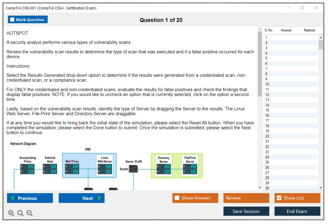 The question format of the CompTIA CS0-001 Exam includes multiple-choice questions (both single and multiple response), drag and drops, and performance-based questions.