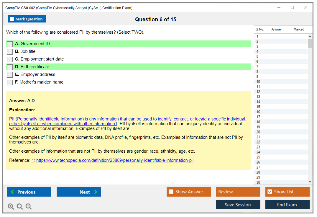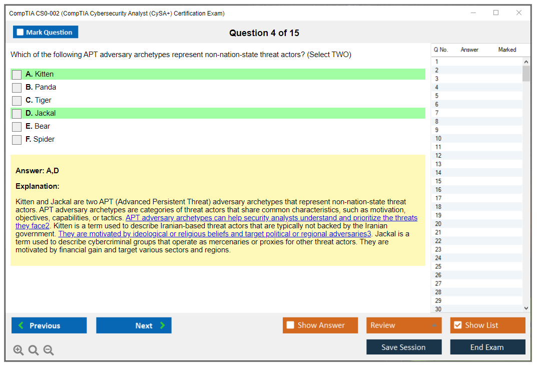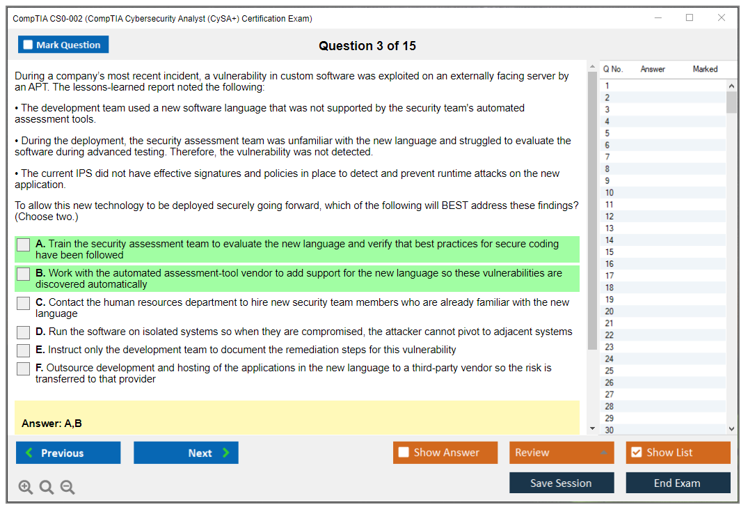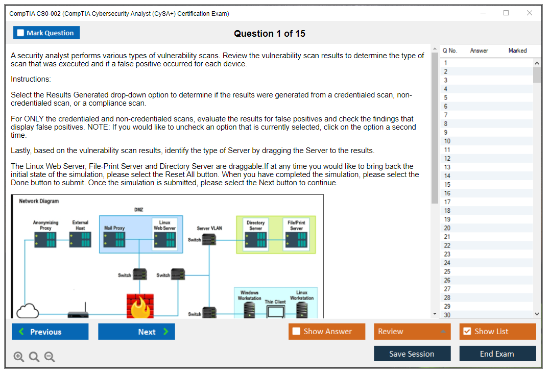The question format of the CompTIA CS0-002 exam includes multiple-choice questions (both single and multiple response), drag and drops, and performance-based questions (PBQs) that require candidates to solve problems in a simulated environment.