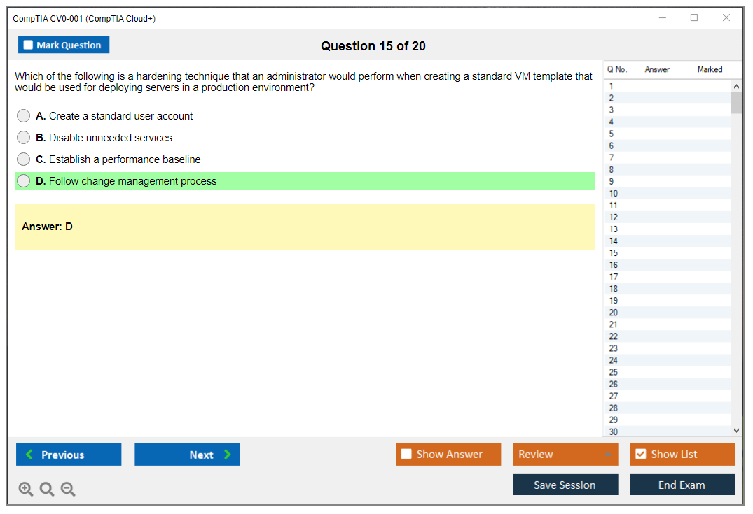 The CompTIA CV0-001 exam was retired on August 1, 2020. It has been replaced by the CV0-002 exam.