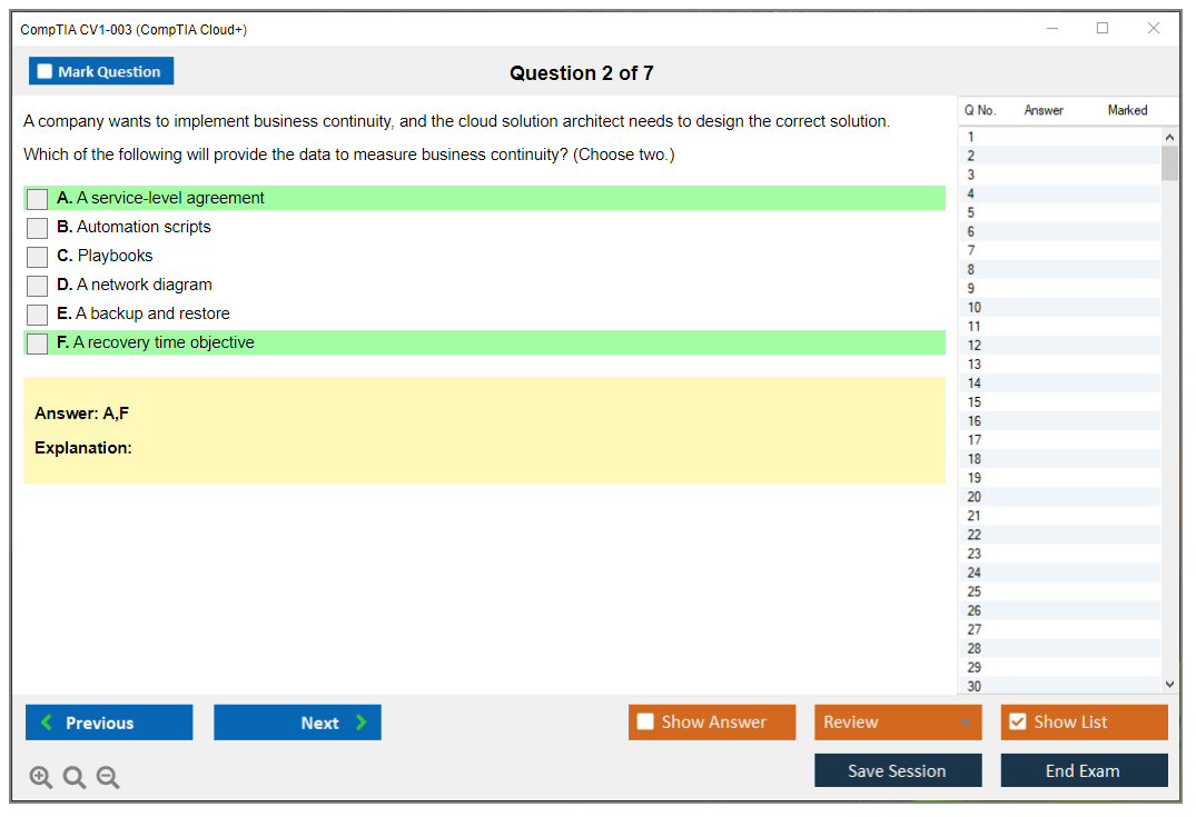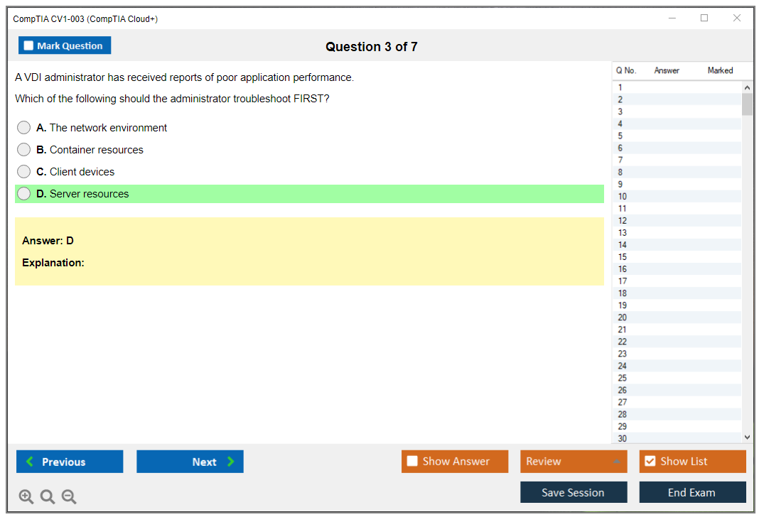 The CompTIA CV1-003 (CompTIA Cloud+) exam is a certification test designed to validate the skills and knowledge required to manage and optimize cloud infrastructure services. The exam covers a wide range of cloud computing topics, including cloud architecture, deployment, operations, security, and troubleshooting.