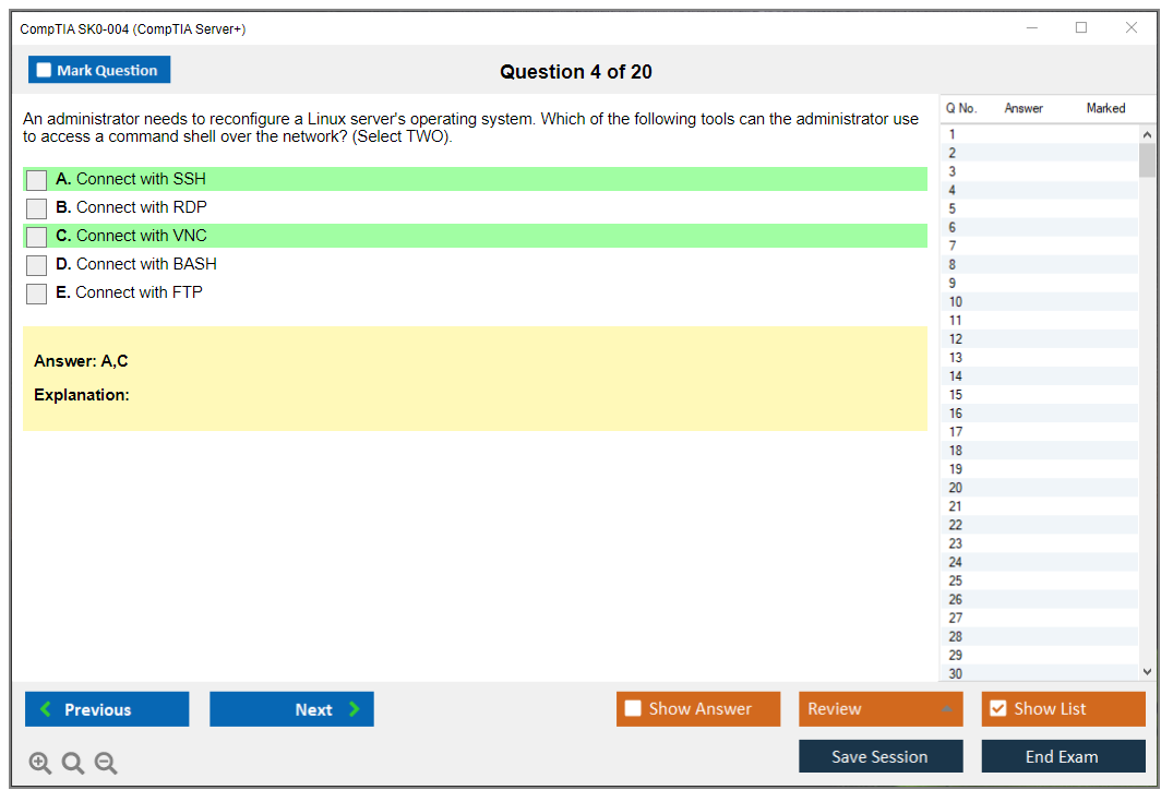 The question format of the CompTIA SK0-004 exam includes multiple-choice questions (both single and multiple response), and performance-based questions.