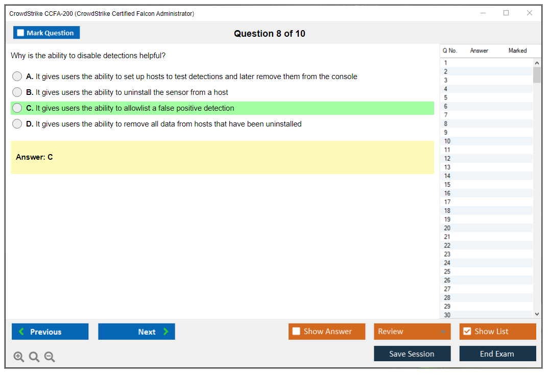 The CrowdStrike CCFA-200 Exam assesses the candidate's ability to perform tasks related to the administration of the CrowdStrike Falcon platform, including configuration, monitoring, and troubleshooting. It is a certification that demonstrates proficiency in using the Falcon platform to protect an organization's endpoints.