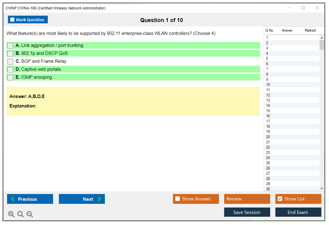 What are the Sample Questions of CWNP CWNA-106 Exam?
