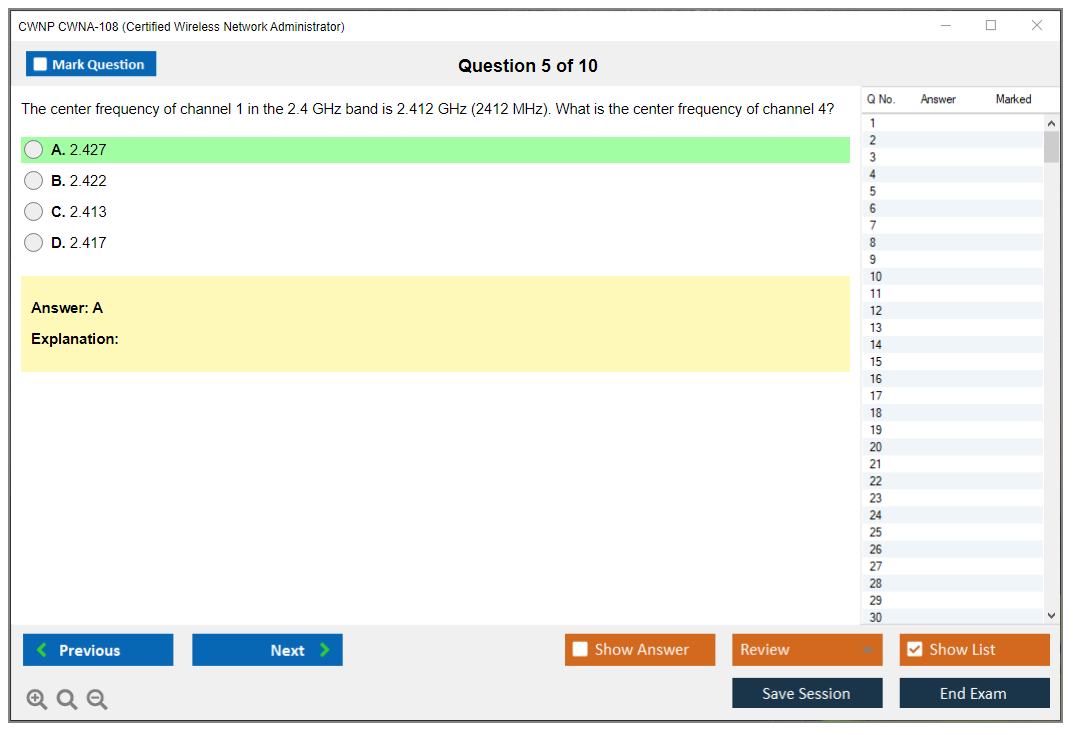The CWNP CWNA-108 (Certified Wireless Network Administrator) exam is designed to validate the knowledge and skills required to successfully manage, troubleshoot, and secure wireless networks. It is a foundational certification that covers a broad range of wireless networking topics.
