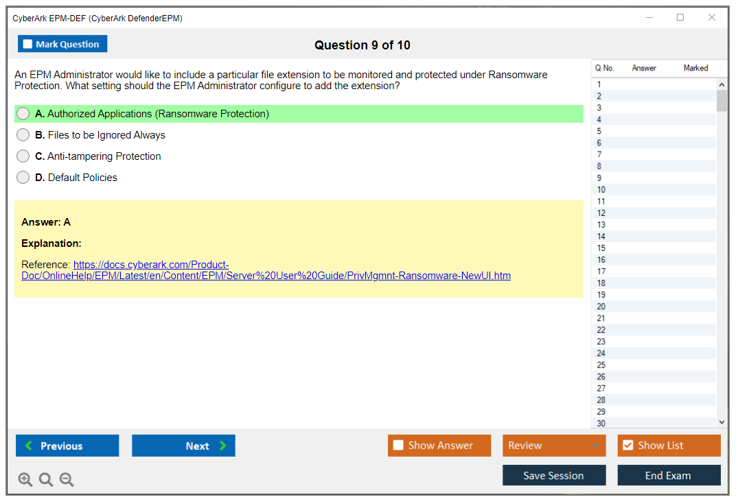 The CyberArk EPM-DEF (CyberArk Defender - EPM) exam is designed to validate the knowledge and skills required to effectively deploy and manage CyberArk Endpoint Privilege Manager (EPM) solutions. This certification is aimed at professionals who are responsible for securing endpoints by enforcing least privilege policies and managing application control.