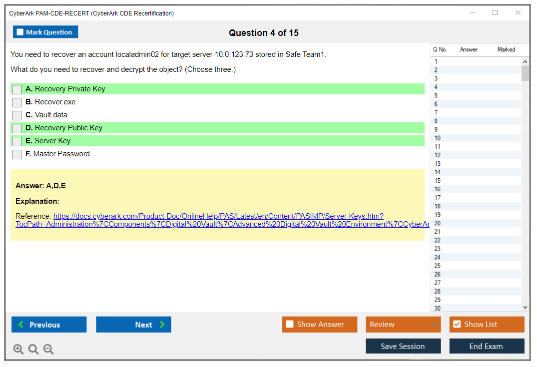 What are the Sample Questions of CyberArk PAM-CDE-RECERT Exam?