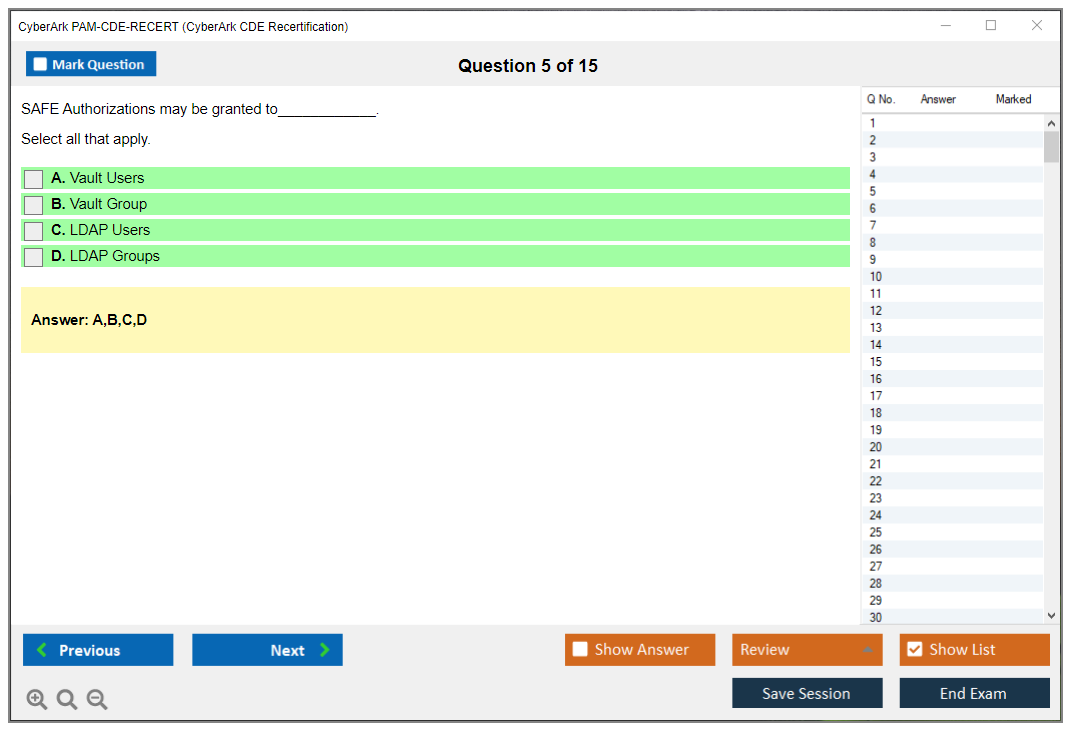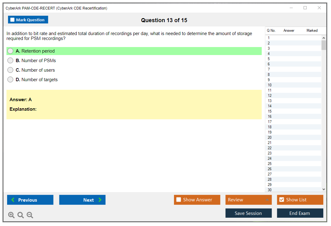 The CyberArk PAM-CDE-RECERT (CyberArk CDE Recertification) Exam is designed for professionals who need to recertify their expertise in CyberArk's Privileged Access Management (PAM) solutions. It ensures that certified individuals maintain a current and comprehensive understanding of CyberArk's technologies and best practices.