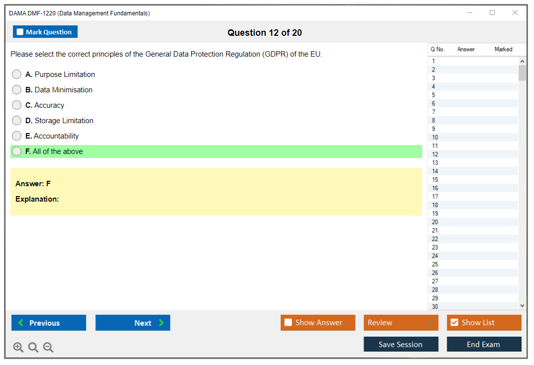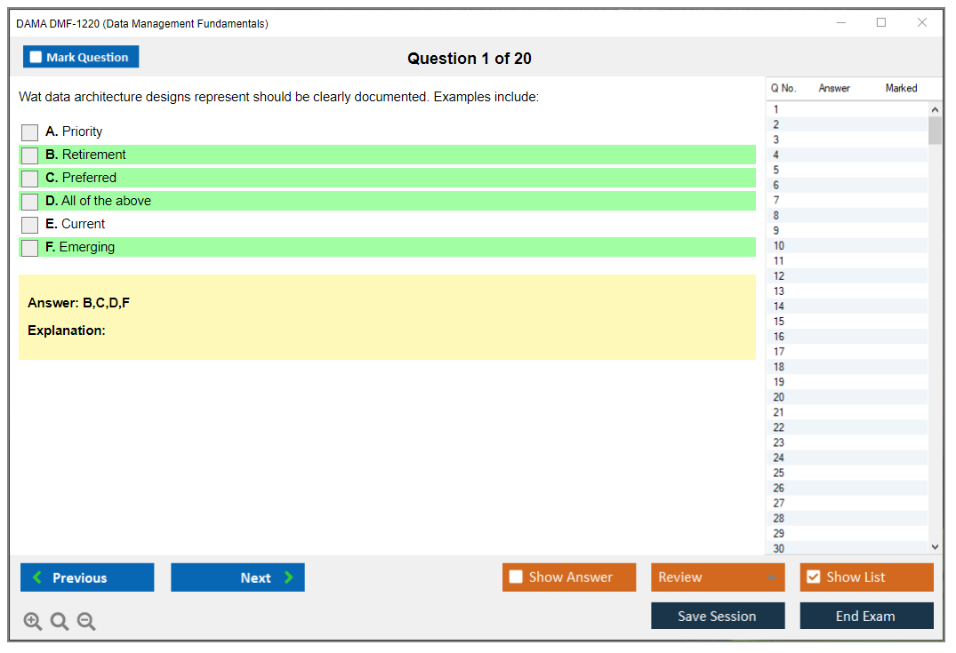 The DAMA DMF-1220 Exam is designed to validate the foundational knowledge of data management professionals. It covers various domains such as data governance, data architecture, data quality, and more, ensuring that certified individuals have a comprehensive understanding of data management principles.