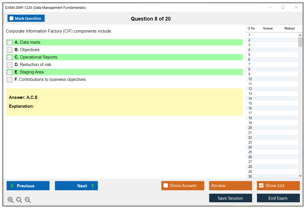 What are the Sample Questions of DAMA DMF-1220 Exam?
