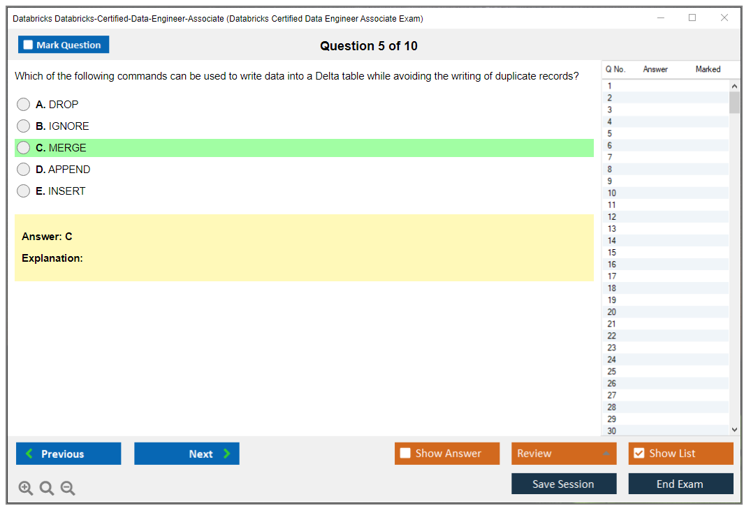 The Databricks Certified Data Engineer Associate Exam is an industry-recognized certification that evaluates a candidate's proficiency in data engineering using the Databricks platform. It covers topics such as data ingestion, transformation, and processing, as well as working with Databricks tools and services.