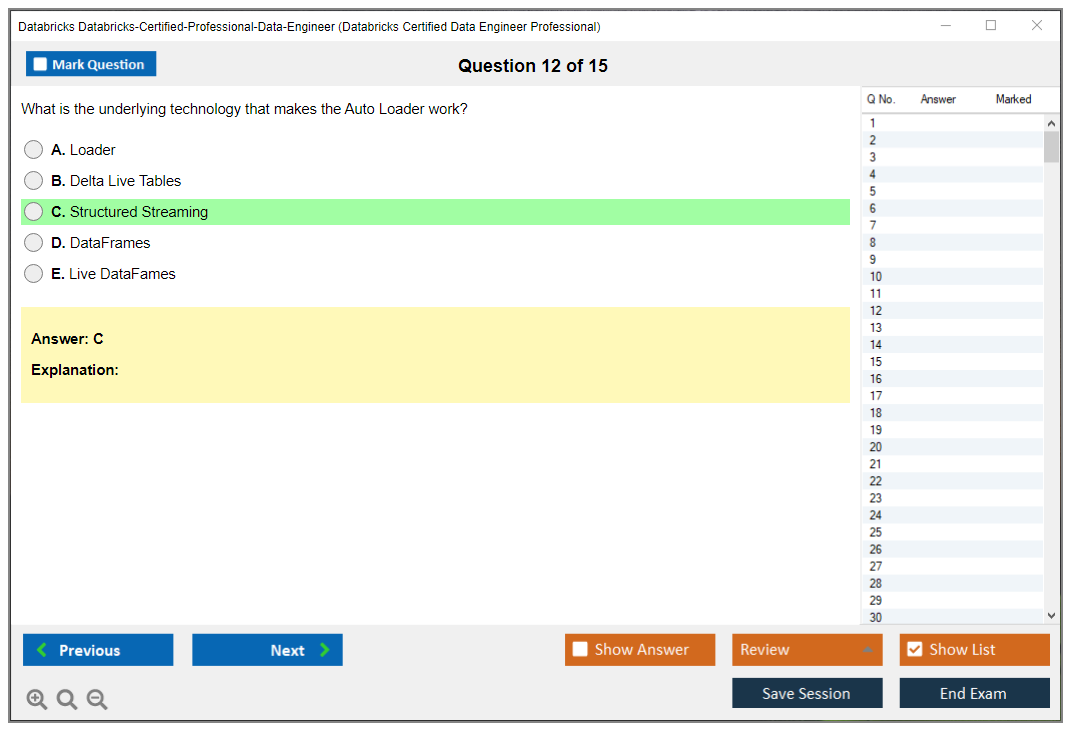 The Databricks Certified Professional Data Engineer exam is designed to assess the skills and knowledge of candidates in the field of data engineering. The certification validates the ability to use Databricks to perform data engineering tasks, including designing data pipelines, implementing data models, and ensuring data quality.