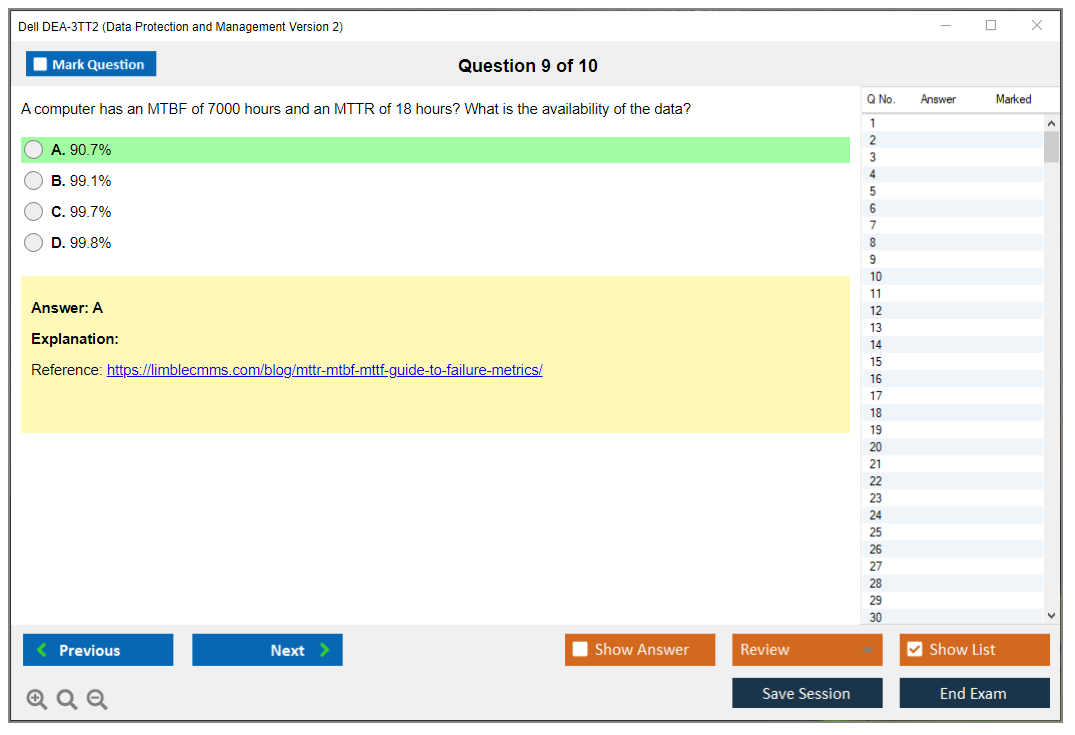 What are the Sample Questions of Dell DEA-3TT2 Exam?